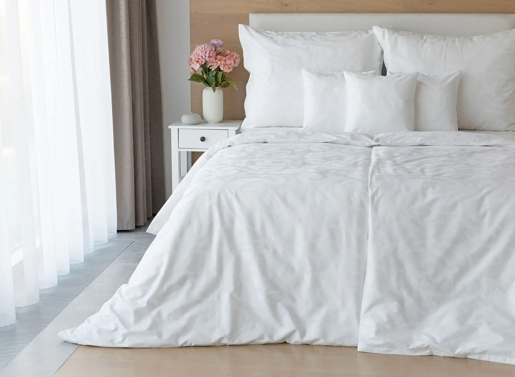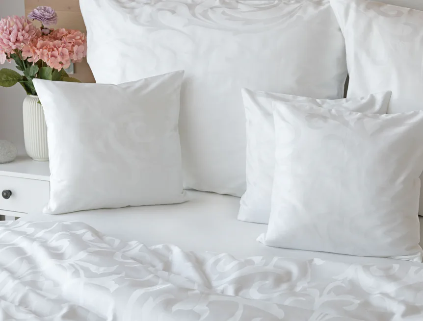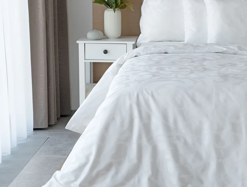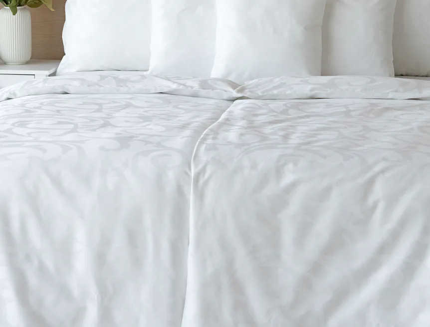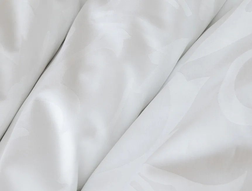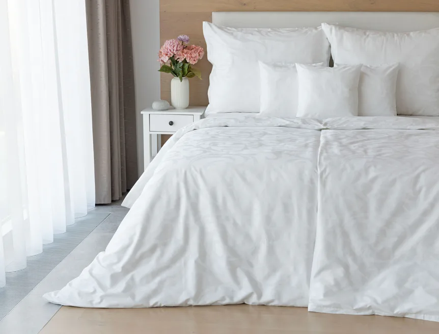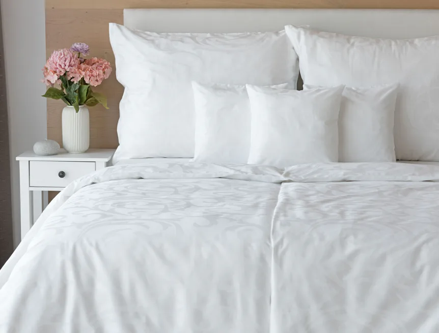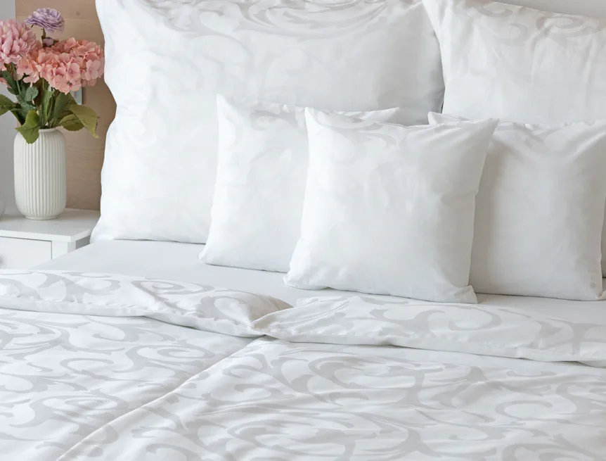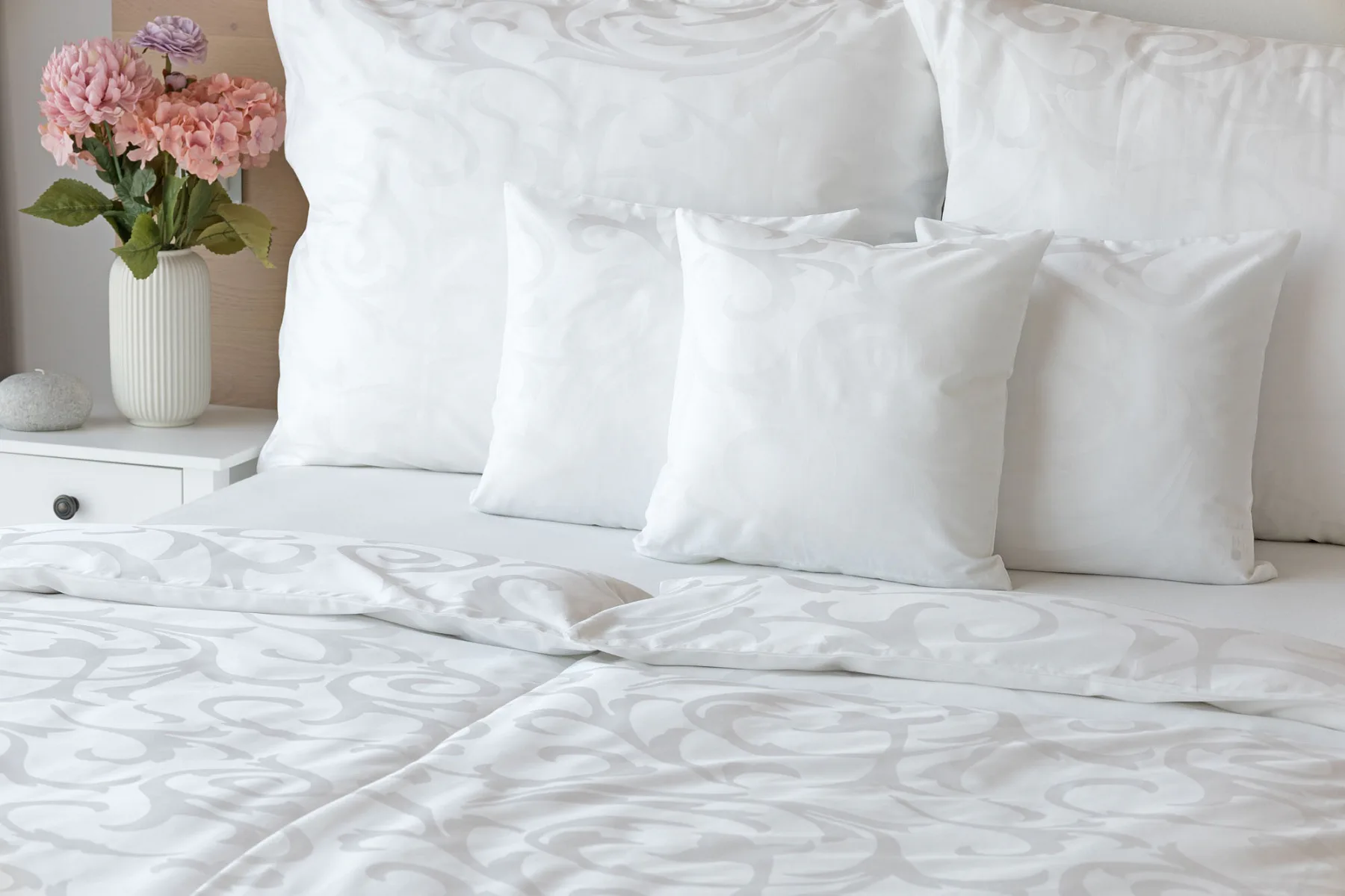 Čistě bílé damaškové povlečení v luxusním žakárovém provedení s decentním vzorem, který působí na lůžku víc než elegantně. Povlečení je vyrobeno z vysoce kvalitní česané a mercerované bavlněné příze.