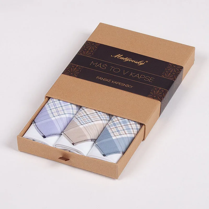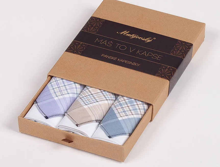 Elegance dotažená do posledního detailu. Tradiční bavlněný kapesník je nejen praktickým pomocníkem v celé řadě každodenních okamžiků, ale také symbolem elegance a vytříbeného stylu. Sada tří barevně sladěných látkových kapesníků, které vynikají hebkostí a savostí, se i díky originálnímu balení stane ideálním dárkem pro moderního gentlemana.
