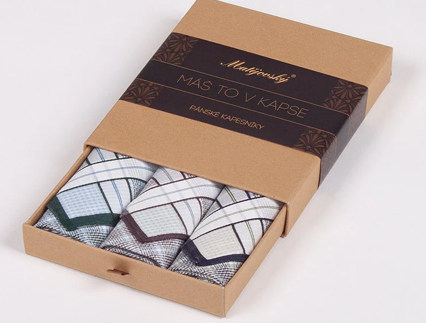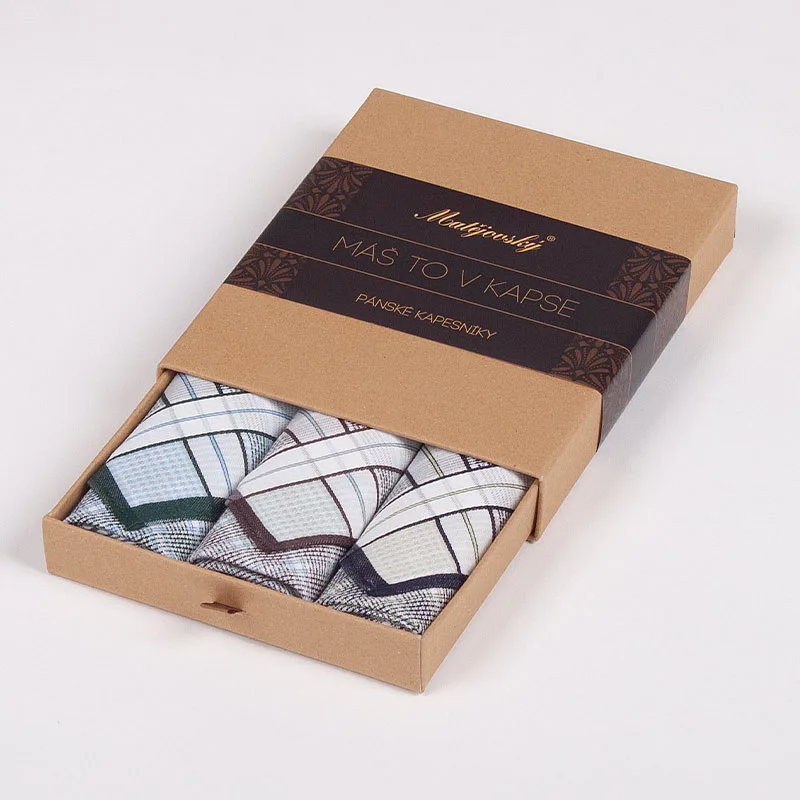 Elegance dotažená do posledního detailu. Tradiční bavlněný kapesník je nejen praktickým pomocníkem v celé řadě každodenních okamžiků, ale také symbolem elegance a vytříbeného stylu. Sada tří barevně sladěných látkových kapesníků, které vynikají hebkostí a savostí, se i díky originálnímu balení stane ideálním dárkem pro moderního gentlemana.
