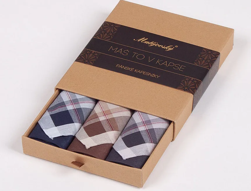 Elegance dotažená do posledního detailu. Tradiční bavlněný kapesník je nejen praktickým pomocníkem v celé řadě každodenních okamžiků, ale také symbolem elegance a vytříbeného stylu. Sada tří barevně sladěných látkových kapesníků, které vynikají hebkostí a savostí, se i díky originálnímu balení stane ideálním dárkem pro moderního gentlemana.