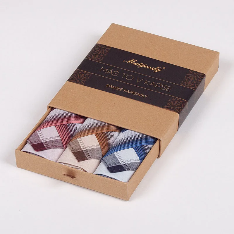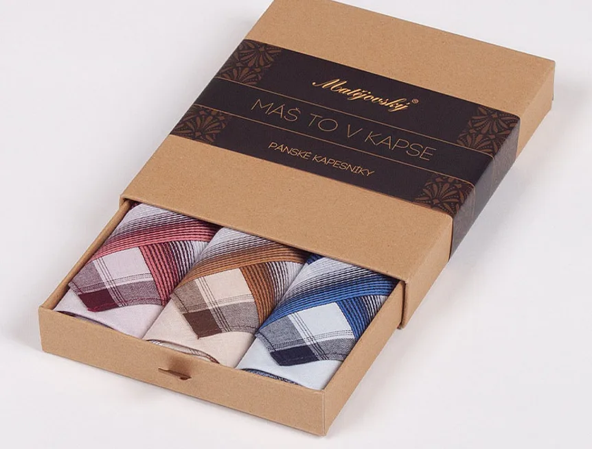 Elegance dotažená do posledního detailu. Tradiční bavlněný kapesník je nejen praktickým pomocníkem v celé řadě každodenních okamžiků, ale také symbolem elegance a vytříbeného stylu. Sada tří barevně sladěných látkových kapesníků, které vynikají hebkostí a savostí, se i díky originálnímu balení stane ideálním dárkem pro moderního gentlemana.