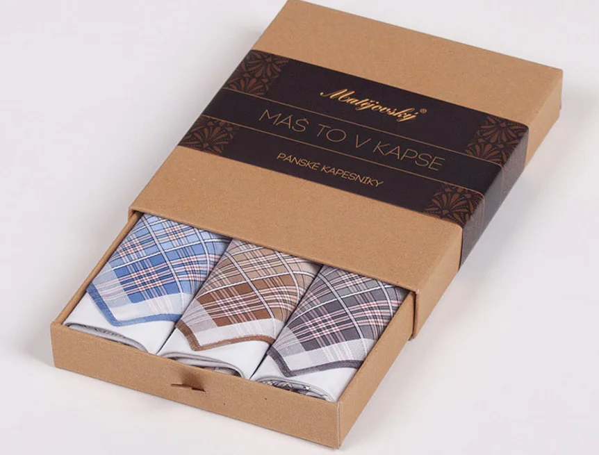 Elegance dotažená do posledního detailu. Tradiční bavlněný kapesník je nejen praktickým pomocníkem v celé řadě každodenních okamžiků, ale také symbolem elegance a vytříbeného stylu. Sada tří barevně sladěných látkových kapesníků, které vynikají hebkostí a savostí, se i díky originálnímu balení stane ideálním dárkem pro moderního gentlemana.