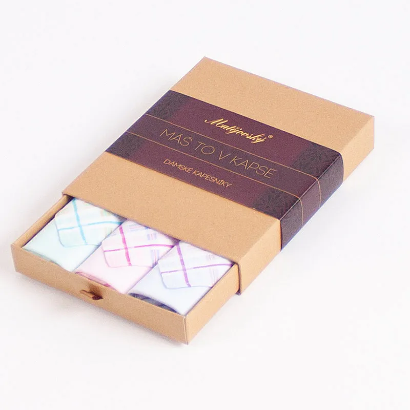 Elegance dotažená do posledního detailu. Tradiční bavlněný kapesník je nejen praktickým pomocníkem v celé řadě každodenních okamžiků, ale také symbolem elegance a vytříbeného stylu. Sada tří barevně sladěných látkových kapesníků, které vynikají hebkostí a savostí, se i díky originálnímu balení stane ideálním dárkem pro každou dámu.