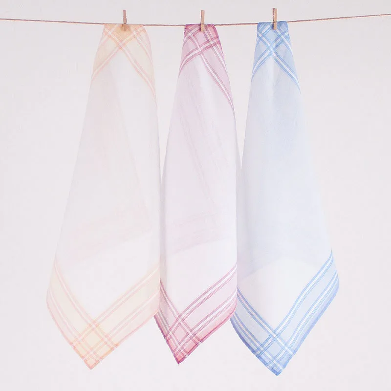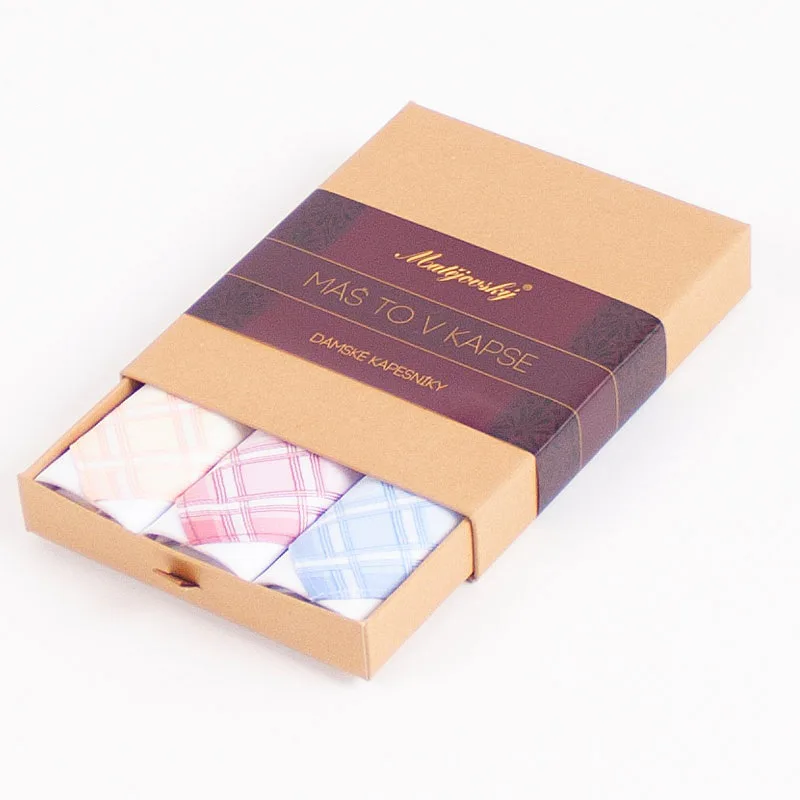 Elegance dotažená do posledního detailu. Tradiční bavlněný kapesník je nejen praktickým pomocníkem v celé řadě každodenních okamžiků, ale také symbolem elegance a vytříbeného stylu. Sada tří barevně sladěných látkových kapesníků, které vynikají hebkostí a savostí, se i díky originálnímu balení stane ideálním dárkem pro každou dámu.