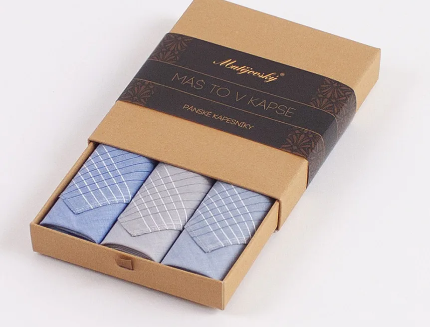 Elegance dotažená do posledního detailu. Tradiční bavlněný kapesník je nejen praktickým pomocníkem v celé řadě každodenních okamžiků, ale také symbolem elegance a vytříbeného stylu. Sada tří barevně sladěných látkových kapesníků, které vynikají hebkostí a savostí, se i díky originálnímu balení stane ideálním dárkem pro moderního gentlemana.