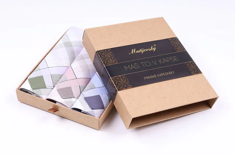 Elegance dotažená do posledního detailu. Tradiční bavlněný kapesník je nejen praktickým pomocníkem v celé řadě každodenních okamžiků, ale také symbolem elegance a vytříbeného stylu. Sada tří barevně sladěných látkových kapesníků, které vynikají hebkostí a savostí, se i díky originálnímu balení stane ideálním dárkem pro moderního gentlemana.