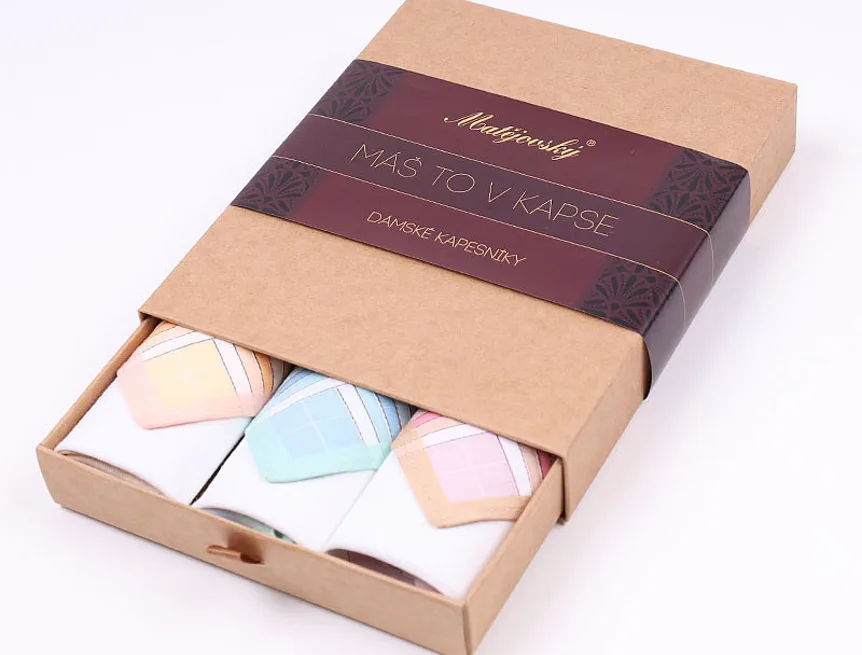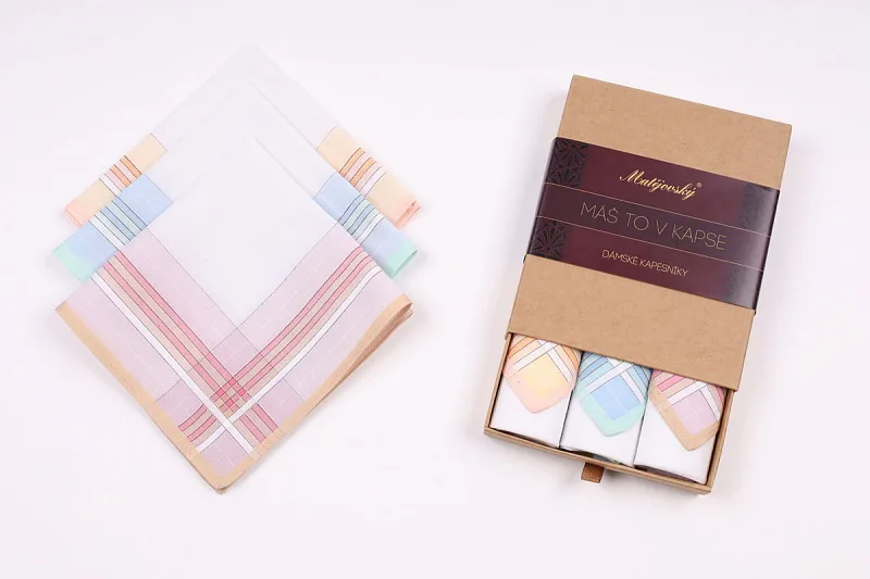 Elegance dotažená do posledního detailu. Tradiční bavlněný kapesník je nejen praktickým pomocníkem v celé řadě každodenních okamžiků, ale také symbolem elegance a vytříbeného stylu. Sada tří barevně sladěných látkových kapesníků, které vynikají hebkostí a savostí, se i díky originálnímu balení stane ideálním dárkem pro každou dámu.