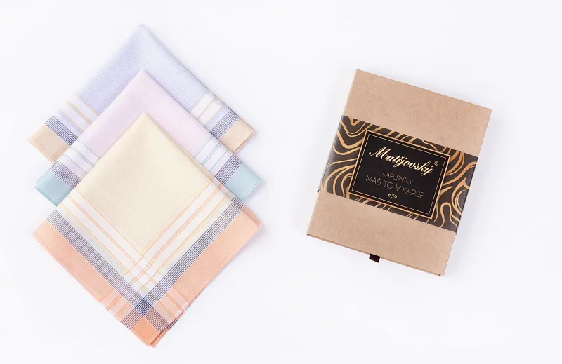 Elegance dotažená do posledního detailu. Tradiční bavlněný kapesník je nejen praktickým pomocníkem v celé řadě každodenních okamžiků, ale také symbolem elegance a vytříbeného stylu. Sada tří barevně sladěných látkových kapesníků, které vynikají hebkostí a savostí, se i díky originálnímu balení stane ideálním dárkem pro každou dámu.