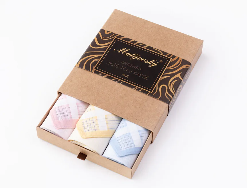 Elegance dotažená do posledního detailu. Tradiční bavlněný kapesník je nejen praktickým pomocníkem v celé řadě každodenních okamžiků, ale také symbolem elegance a vytříbeného stylu. Sada tří barevně sladěných látkových kapesníků, které vynikají hebkostí a savostí, se i díky originálnímu balení stane ideálním dárkem pro každou dámu.