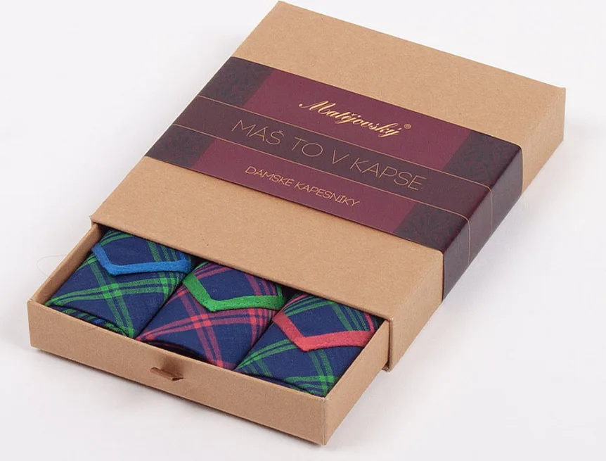 Elegance dotažená do posledního detailu. Tradiční bavlněný kapesník je nejen praktickým pomocníkem v celé řadě každodenních okamžiků, ale také symbolem elegance a vytříbeného stylu. Sada tří barevně sladěných látkových kapesníků, které vynikají hebkostí a savostí, se i díky originálnímu balení stane ideálním dárkem pro každou dámu.