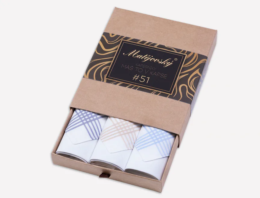Elegance dotažená do posledního detailu. Tradiční bavlněný kapesník je nejen praktickým pomocníkem v celé řadě každodenních okamžiků, ale také symbolem elegance a vytříbeného stylu. Sada tří barevně sladěných látkových kapesníků, které vynikají hebkostí a savostí, se i díky originálnímu balení stane ideálním dárkem pro moderního gentlemana.