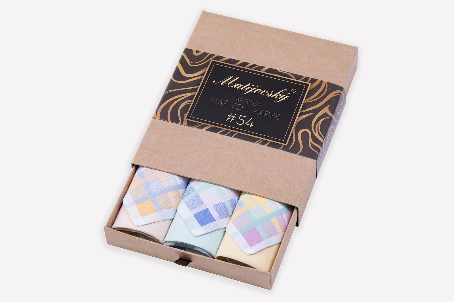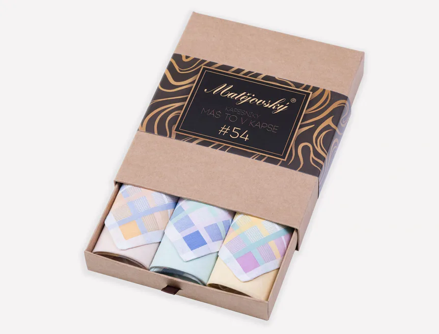 Elegance dotažená do posledního detailu. Tradiční bavlněný kapesník je nejen praktickým pomocníkem v celé řadě každodenních okamžiků, ale také symbolem elegance a vytříbeného stylu. Sada tří barevně...
