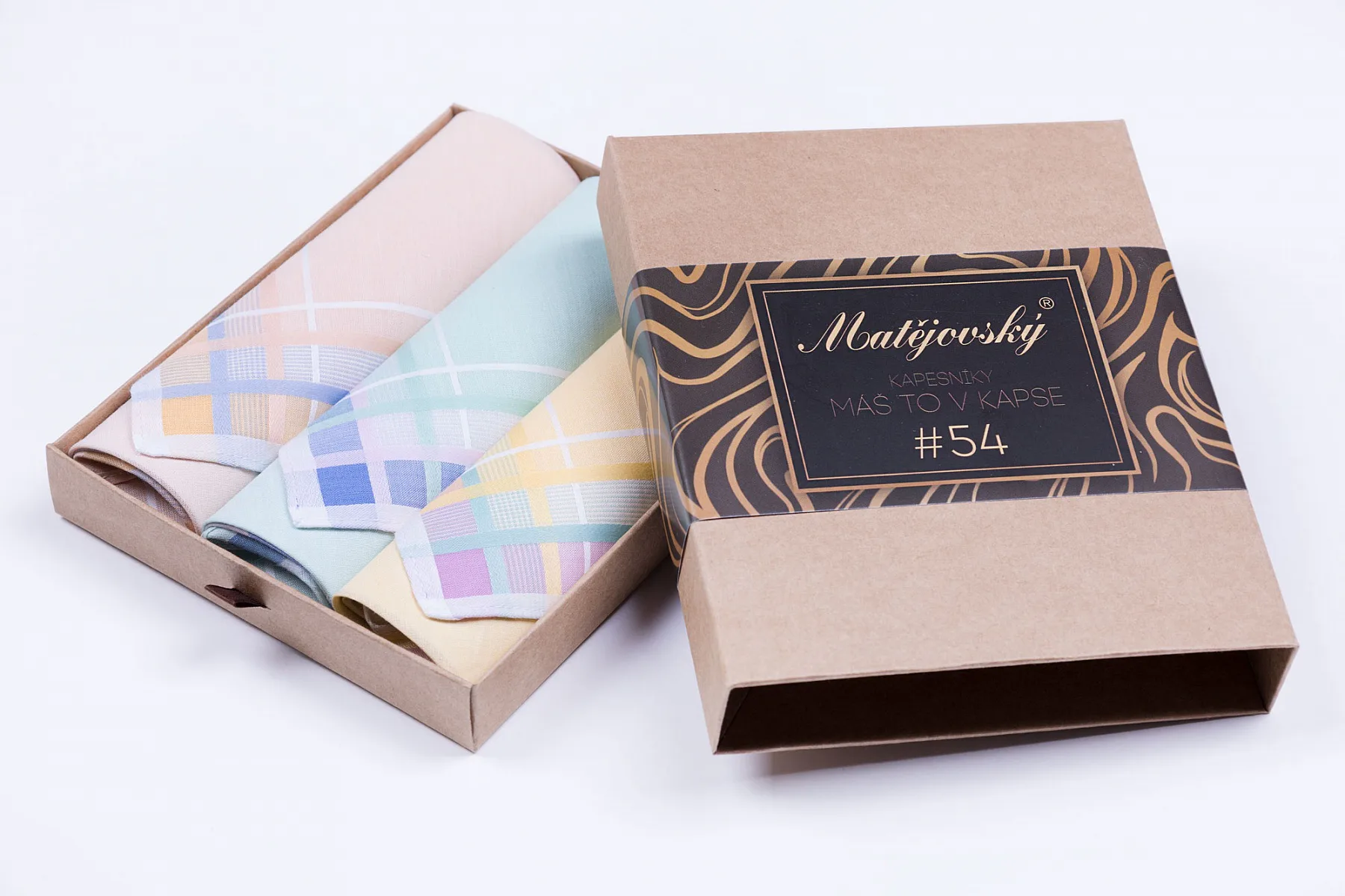 Elegance dotažená do posledního detailu. Tradiční bavlněný kapesník je nejen praktickým pomocníkem v celé řadě každodenních okamžiků, ale také symbolem elegance a vytříbeného stylu. Sada tří barevně sladěných látkových kapesníků, které vynikají hebkostí a savostí, se i díky originálnímu balení stane ideálním dárkem pro každou dámu.