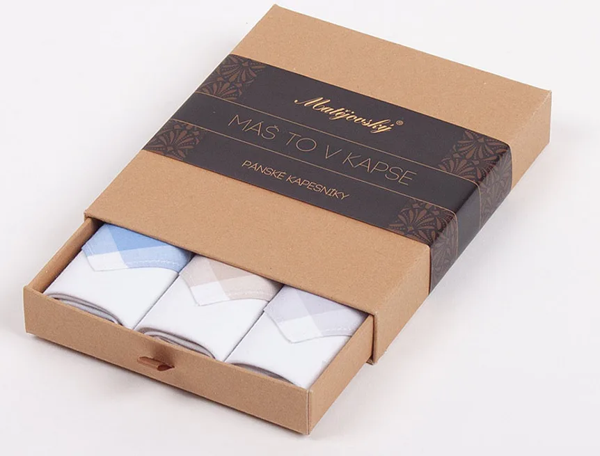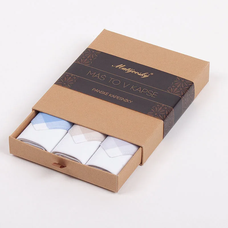 Elegance dotažená do posledního detailu. Tradiční bavlněný kapesník je nejen praktickým pomocníkem v celé řadě každodenních okamžiků, ale také symbolem elegance a vytříbeného stylu. Sada tří barevně sladěných látkových kapesníků, které vynikají hebkostí a savostí, se i díky originálnímu balení stane ideálním dárkem pro moderního gentlemana.