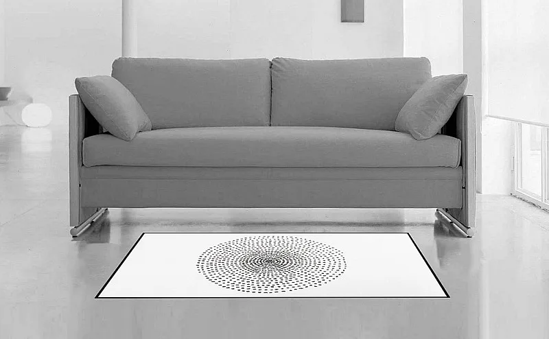 Dekorační tkaný kobereček s krásnou texturou je novinkou v sortimentu a doplňuje designové řady nejoblíbenějších geometrických motivů. Nyní si můžete sladit interiér opravdu do posledního detailu. Dezén CIRCLE na první pohled zaujme výrazným jednoduchým vzorem v černobílém provedení. Druhá strana koberečku je provedena inverzně (viz další foto). Kobereček je po celém obvodu olemován barevně sladěnou lemovkou.