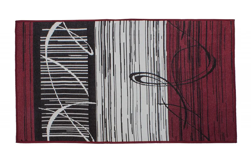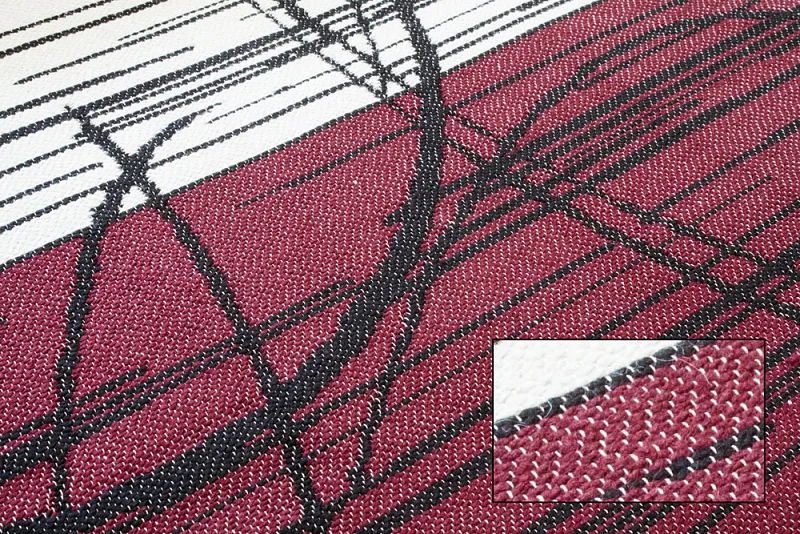 Dekorační tkaný kobereček s krásnou texturou je novinkou v sortimentu a doplňuje designové řady nejoblíbenějších geometrických motivů. Nyní si můžete sladit interiér opravdu do posledního detailu. Dezén ETERNITY CHOCO na první pohled zaujme atraktivním vzorem v odstínech černé, šedé a syté tmavě vínové. Druhá strana koberečku je provedena inverzně (viz další foto). Kobereček je po celém obvodu olemován barevně sladěnou lemovkou.