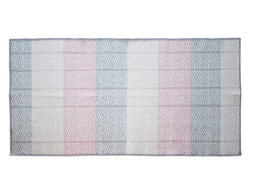 Dekorační tkaný kobereček s krásnou texturou je novinkou v sortimentu a doplňuje designové řady nejoblíbenějších geometrických motivů. Nyní si můžete sladit interiér opravdu do posledního detailu. Dezén MANGO na první pohled zaujme elegantním károvaným motivem v odstínech pastelové lososové, krémové a šedé. Druhá strana koberečku je provedena inverzně (viz další foto). Kobereček je po celém obvodu olemován barevně sladěnou lemovkou.