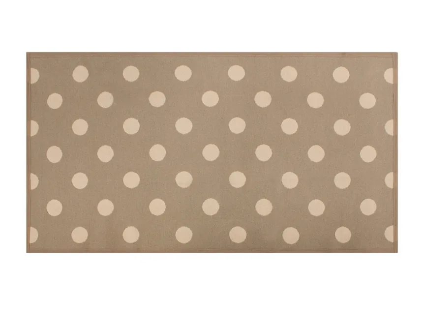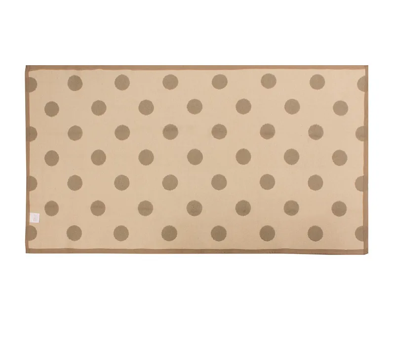 Dekorační tkaný kobereček s krásnou texturou je novinkou v sortimentu a doplňuje designové řady nejoblíbenějších geometrických motivů. Nyní si můžete sladit interiér opravdu do posledního detailu. Dezén PONTE na první pohled zaujme hravým puntíkovým vzorem v hnědobéžovém provedení. Druhá strana koberečku je provedena inverzně (viz další foto). Kobereček je po celém obvodu olemován barevně sladěnou lemovkou.