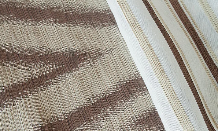 Limitovaná kolekce kombinovaných dekoračních závěsů přináší mimořádný designový kousek. Dodejte interiéru styl okouzlujícím závěsem ANABEL CHOCO. Dokonale sladěné odstíny hnědé a zlatavé barvy na částečně zatemňující designové části se skvěle doplňují s průhledným bílým tylem zdobeným svislými zlatavými a hnědými proužky. Obě části na sebe plynule navazují a tvoří tak originální celek. Jemný matný lesk dodává kombinovanému závěsu nadčasovou eleganci.