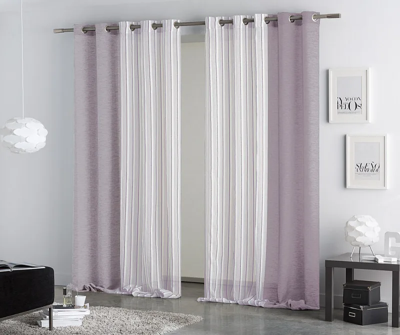Limitovaná kolekce kombinovaných dekoračních závěsů přináší mimořádný designový kousek. Dodejte interiéru styl okouzlujícím závěsem CORAL VIOLET. Dokonalý odstín fialkové barvy na částečně zatemňující designové části se skvěle doplňuje s průhledným bílým tylem zdobeným svislými fialkovými proužky. Obě části na sebe plynule navazují a tvoří tak originální celek.