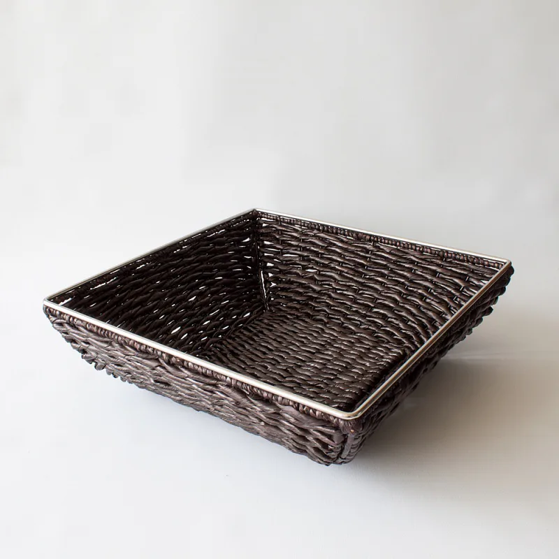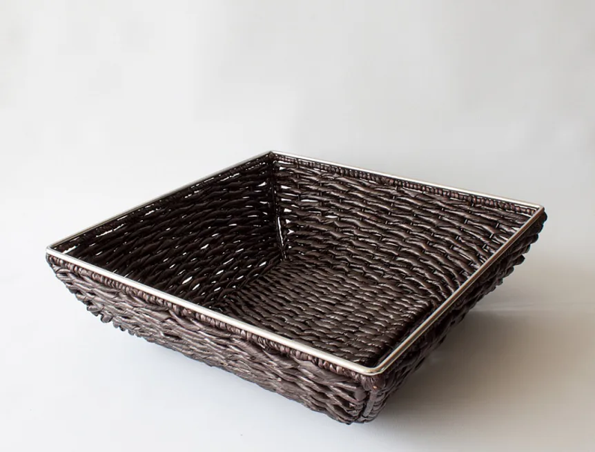 Krásný proutěný koš ozdobí jak klasický, tak moderní interiér. Koš má tmavě hnědou lesklou barvu, horní čtvercový okraj je olemován kovem.