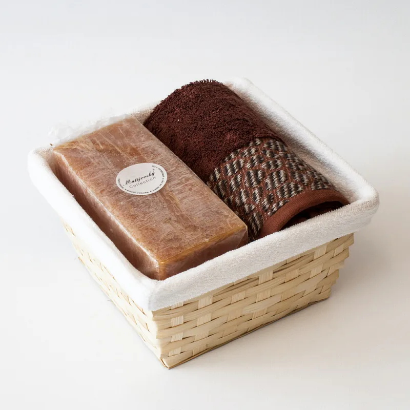 Proutěný košík a bílá textilní vsadka jsou součástí dárkového balení.
