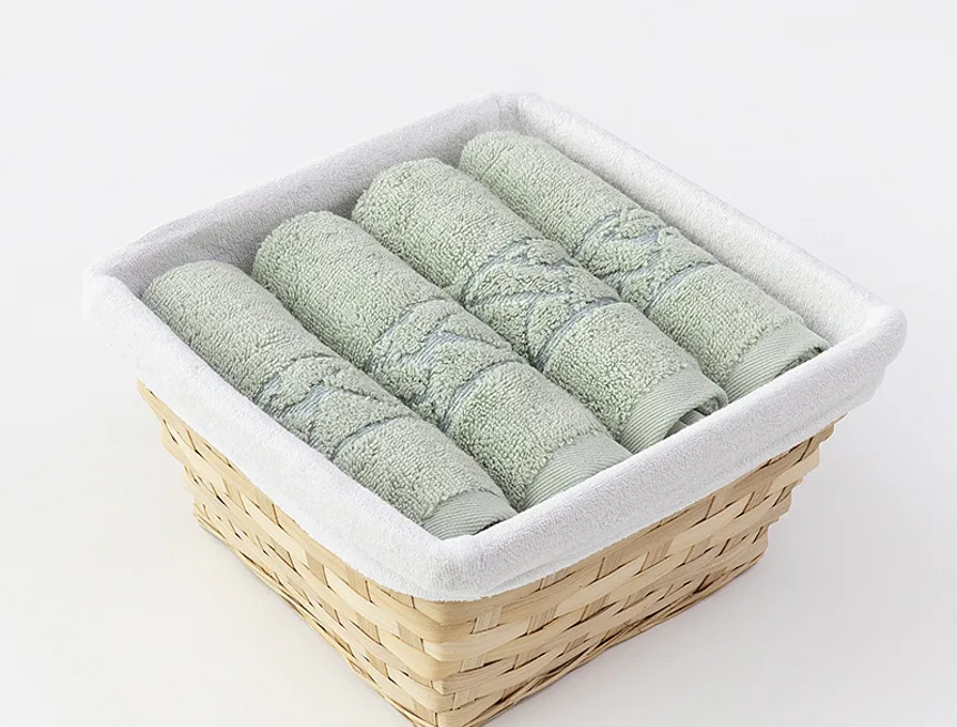 Košík s textilní vsadkou je součástí balení. Ručníky jsou opatřeny poutkem.