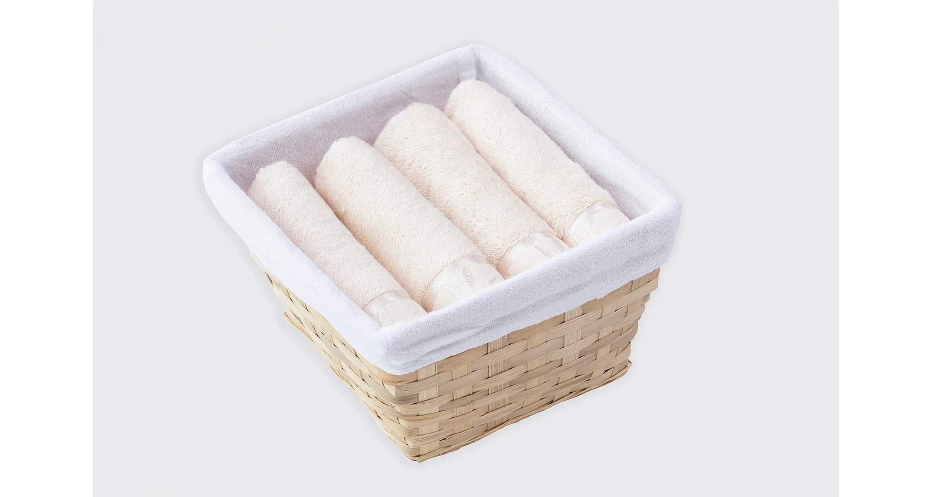 Elegantní a praktické balení ručníků Luna se stane originálním dárkem. Košík obsahuje 4 ks bambusových ručníků v rozměrech 30x50 cm.