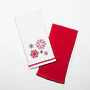 1x bílá utěrka s červeným lemem a výšivkou
