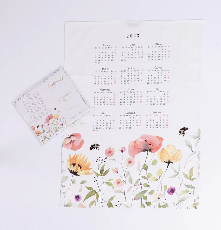 Bavlněný Kalendář s něžným motivem lučního kvítí může být originální ozdobou i praktickým doplňkem vaší kuchyně, případně milým dárkem pro vaše blízké.