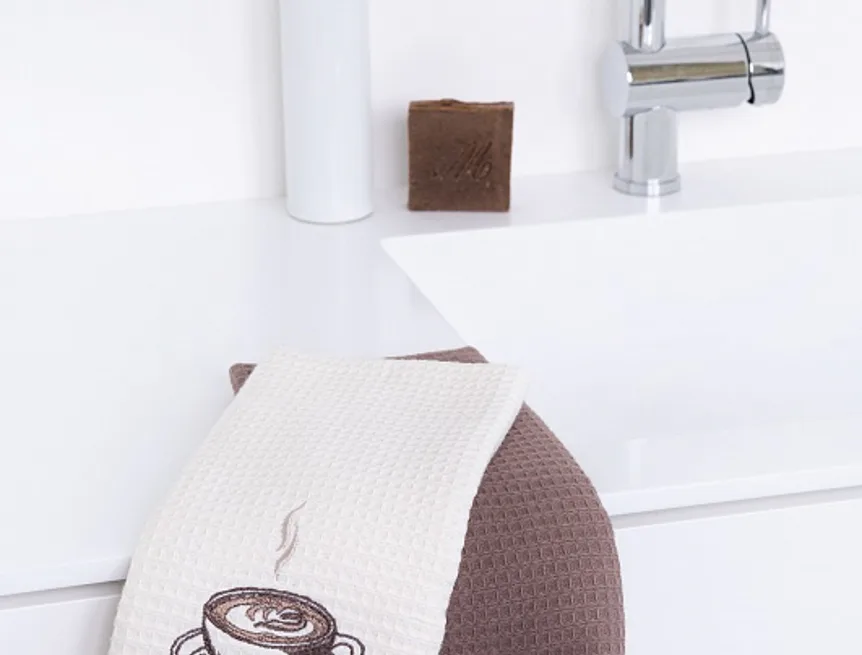 Atraktivní a precizně provedené lesklé výšivky se skvěle doplňují s okouzlujícími barevnými odstíny napříč celou kolekcí vaflových utěrek.