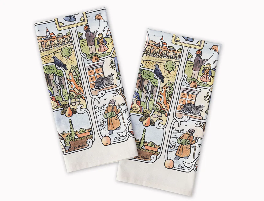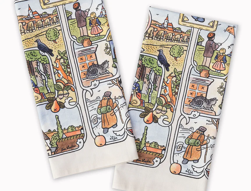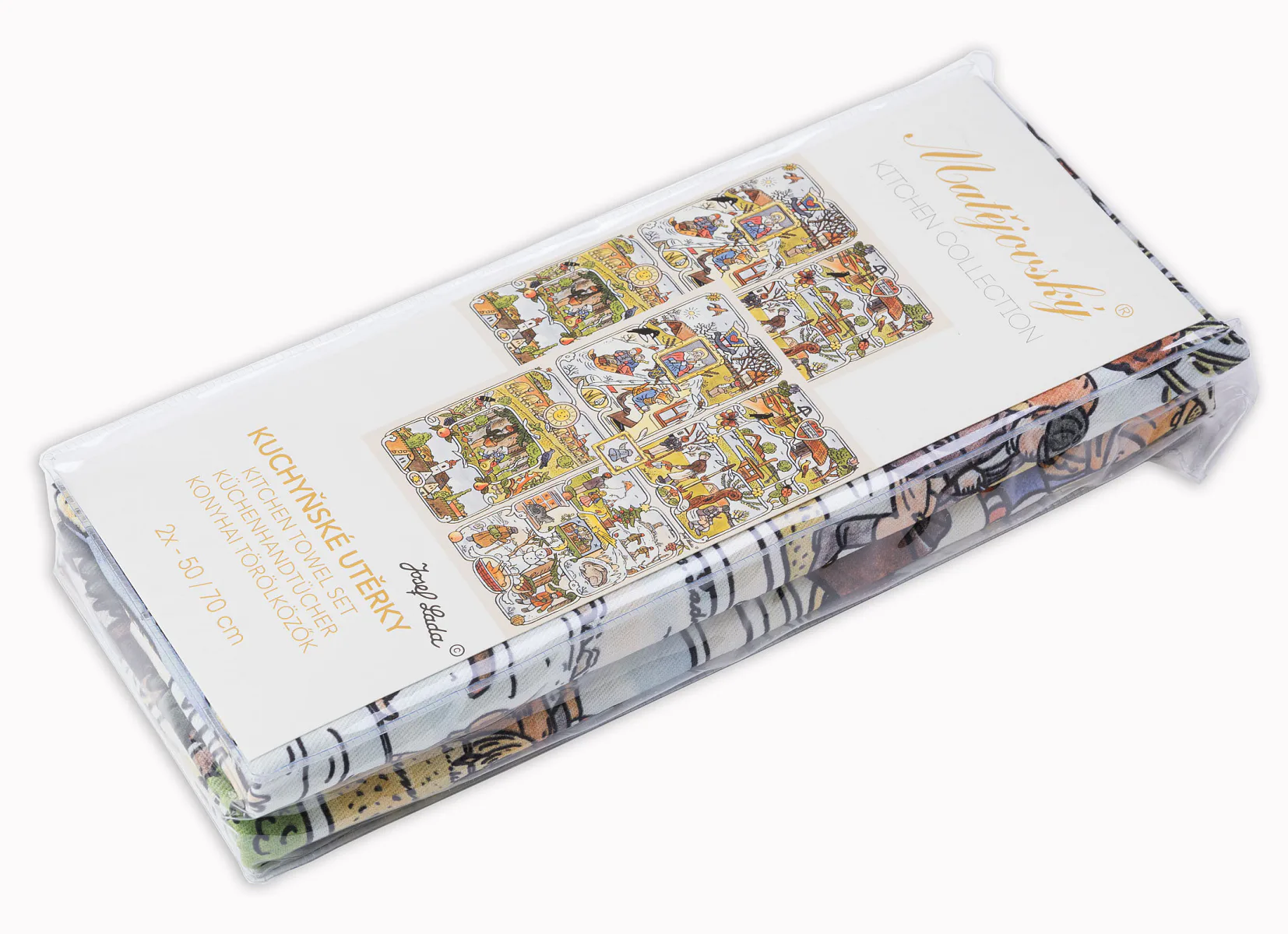 Kolekce bavlněných kuchyňských utěrek s kresbami Josefa Lady vnese do vaší kuchyně jedinečnou atmosféru.