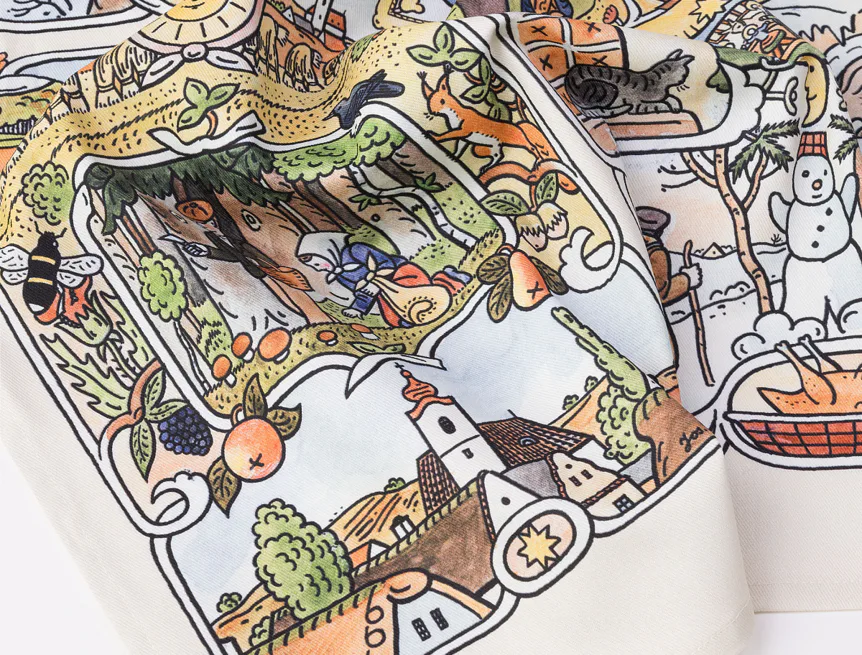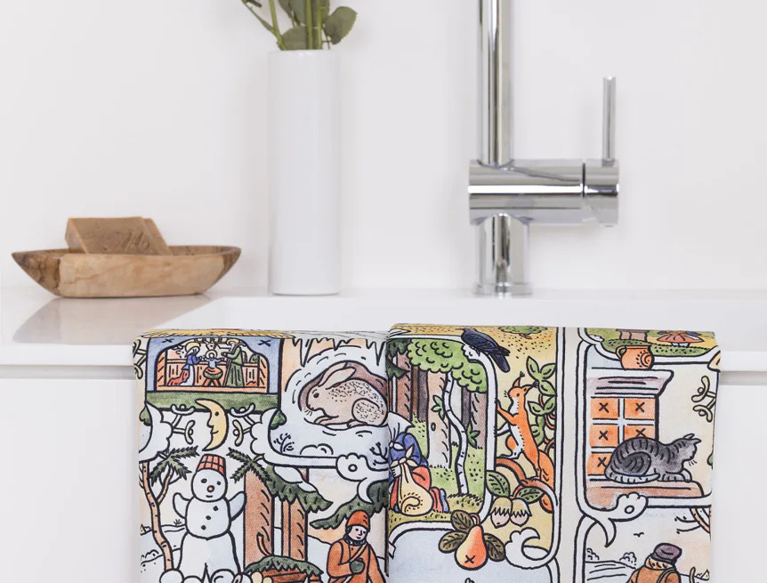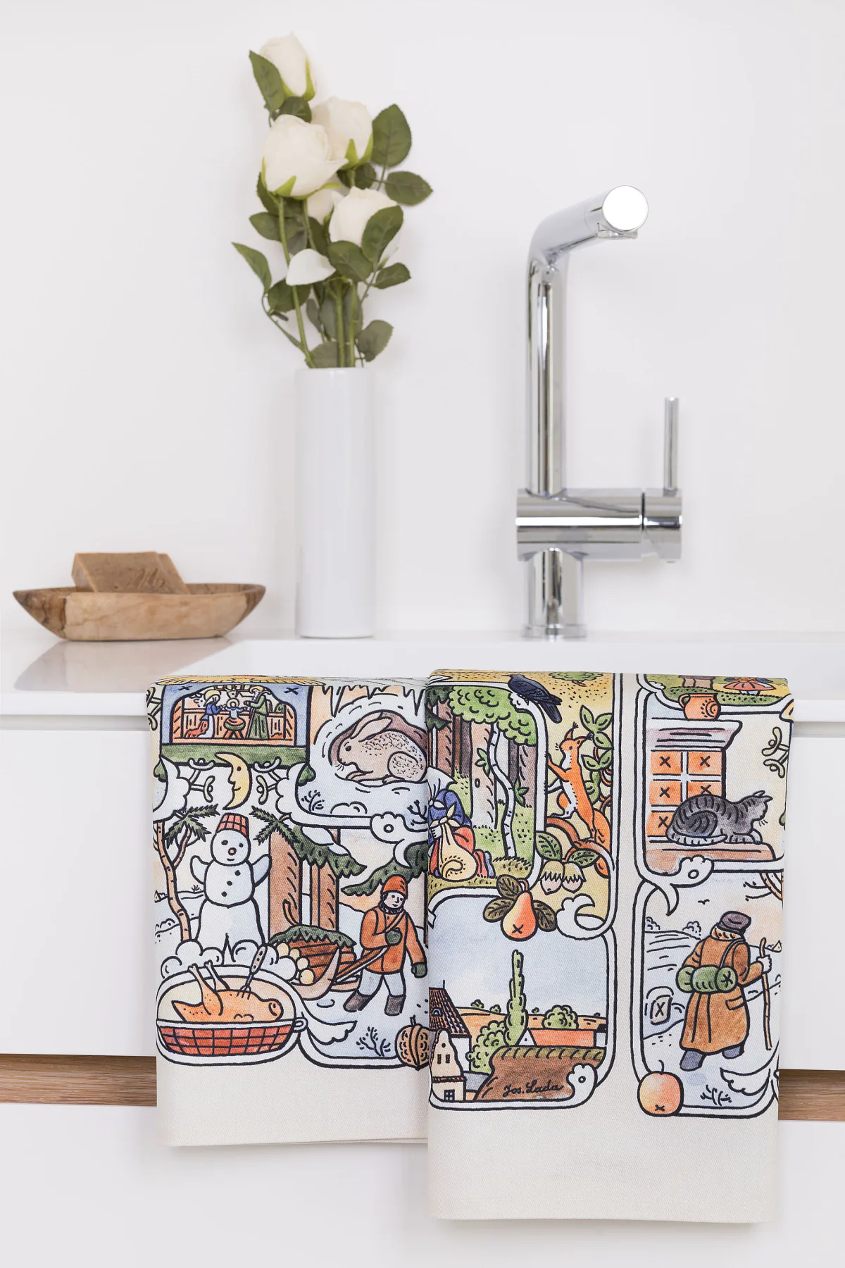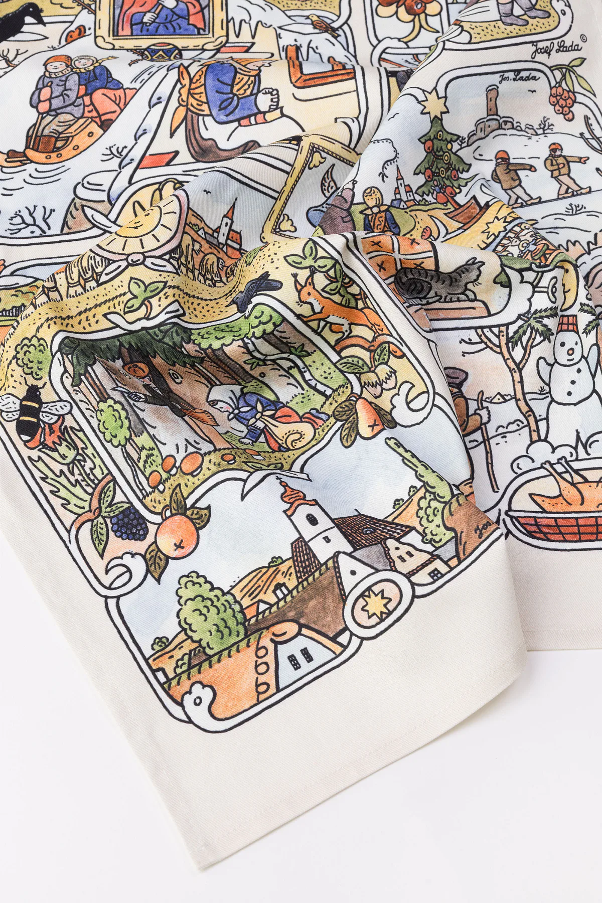 Kuchyňské utěrky Čtyři roční období se díky nejmodernější digitální tiskové technologii pyšní nádhernými barvami a precizními detaily, které vykreslují autentickou ladovskou poetiku.