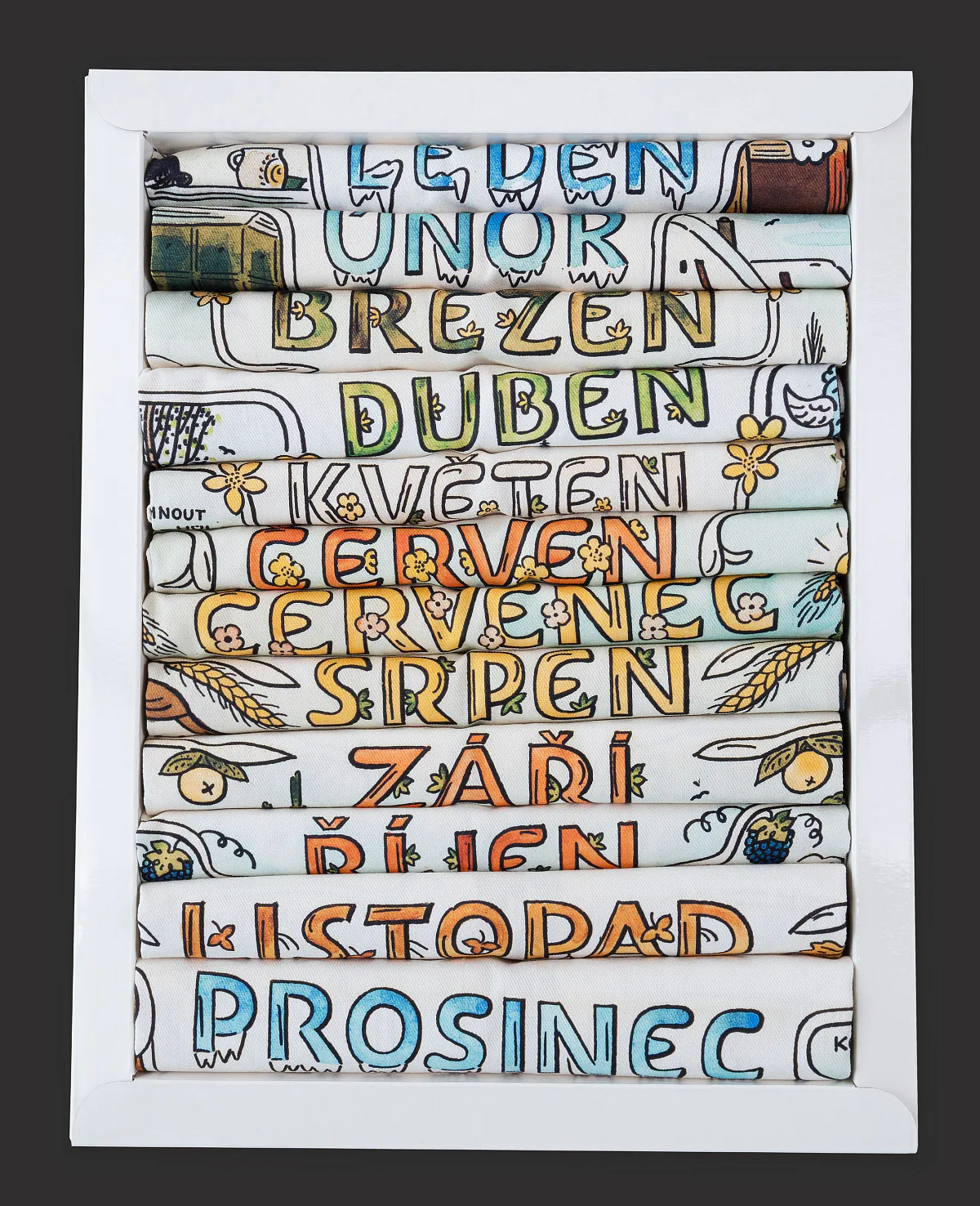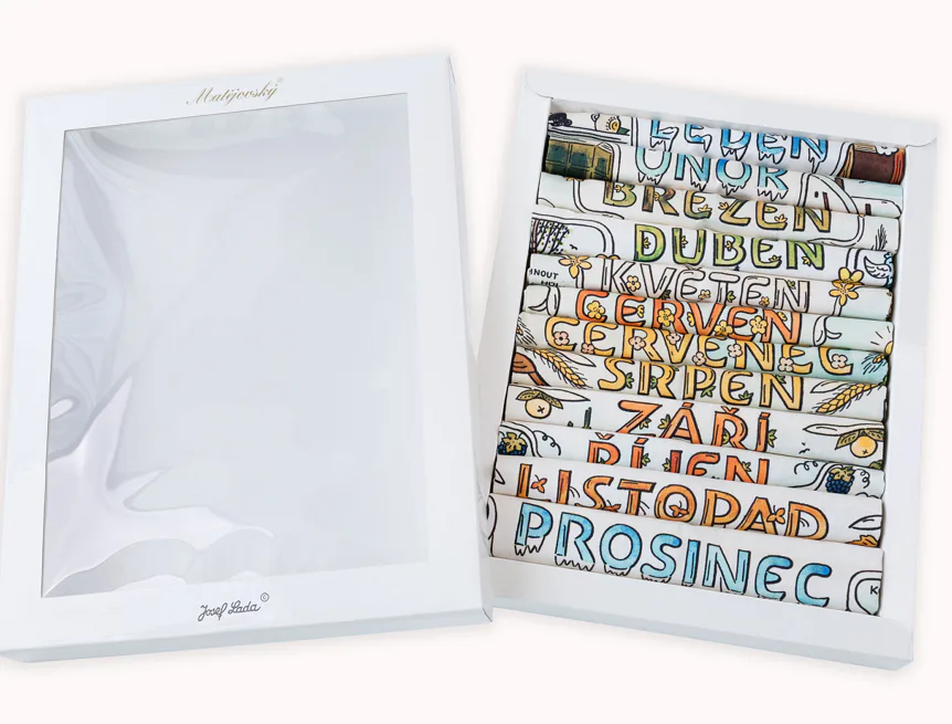 Obsah balení: 12x utěrka s motivy všech měsíců v roce v luxusní dárkové krabici