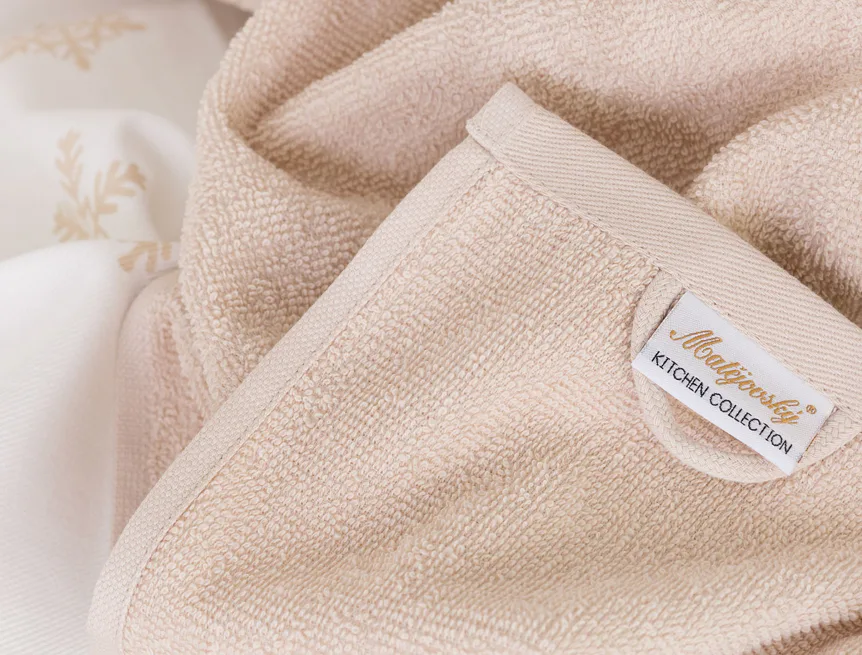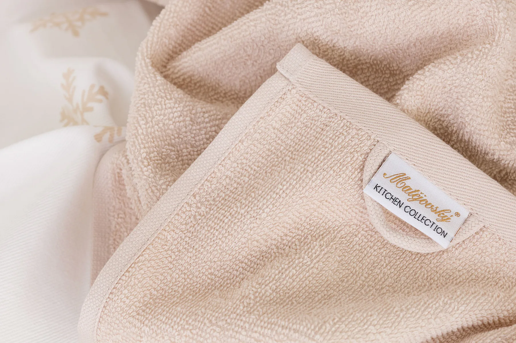 Gramáž: bílá utěrka 250 g/m2, béžový kuchyňský ručník 350 g/m2