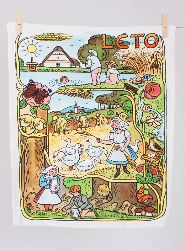 Kuchyňské utěrky Jaro & Léto se díky nejmodernější digitální tiskové technologii pyšní nádhernými barvami a precizními detaily, které vykreslují autentickou ladovskou poetiku.