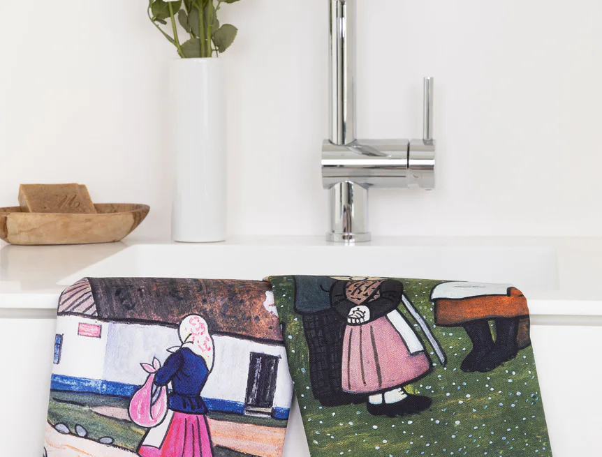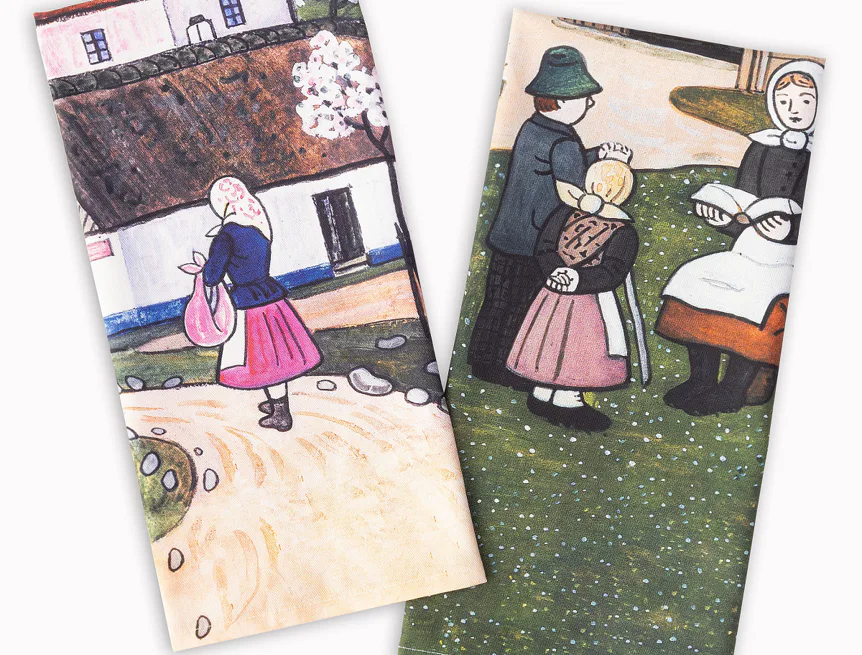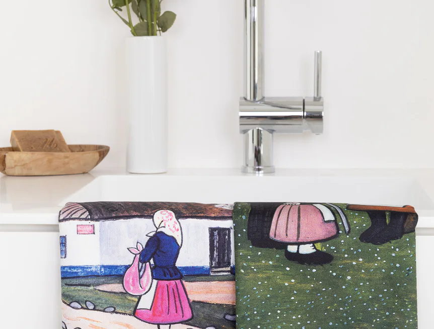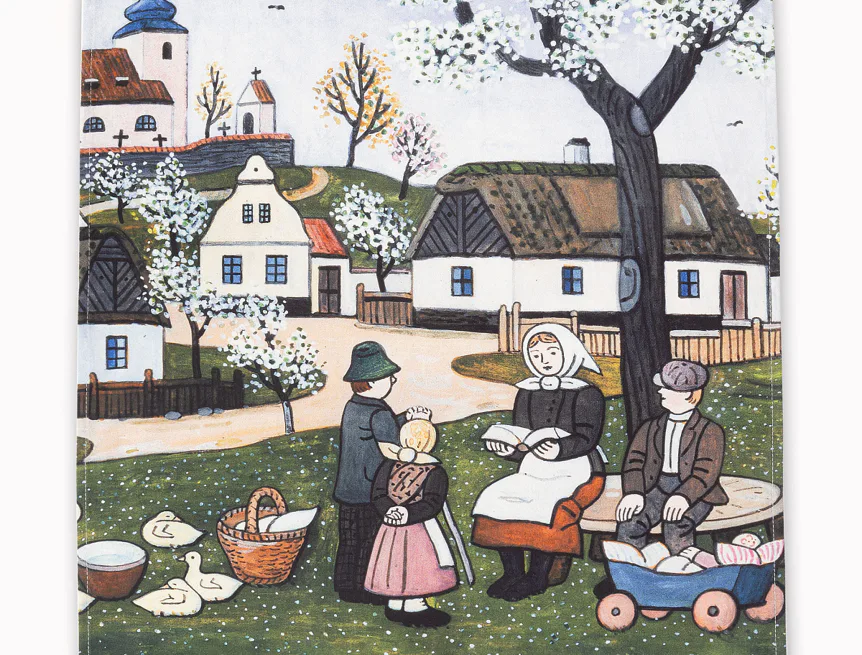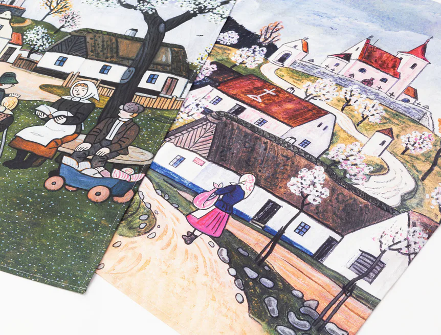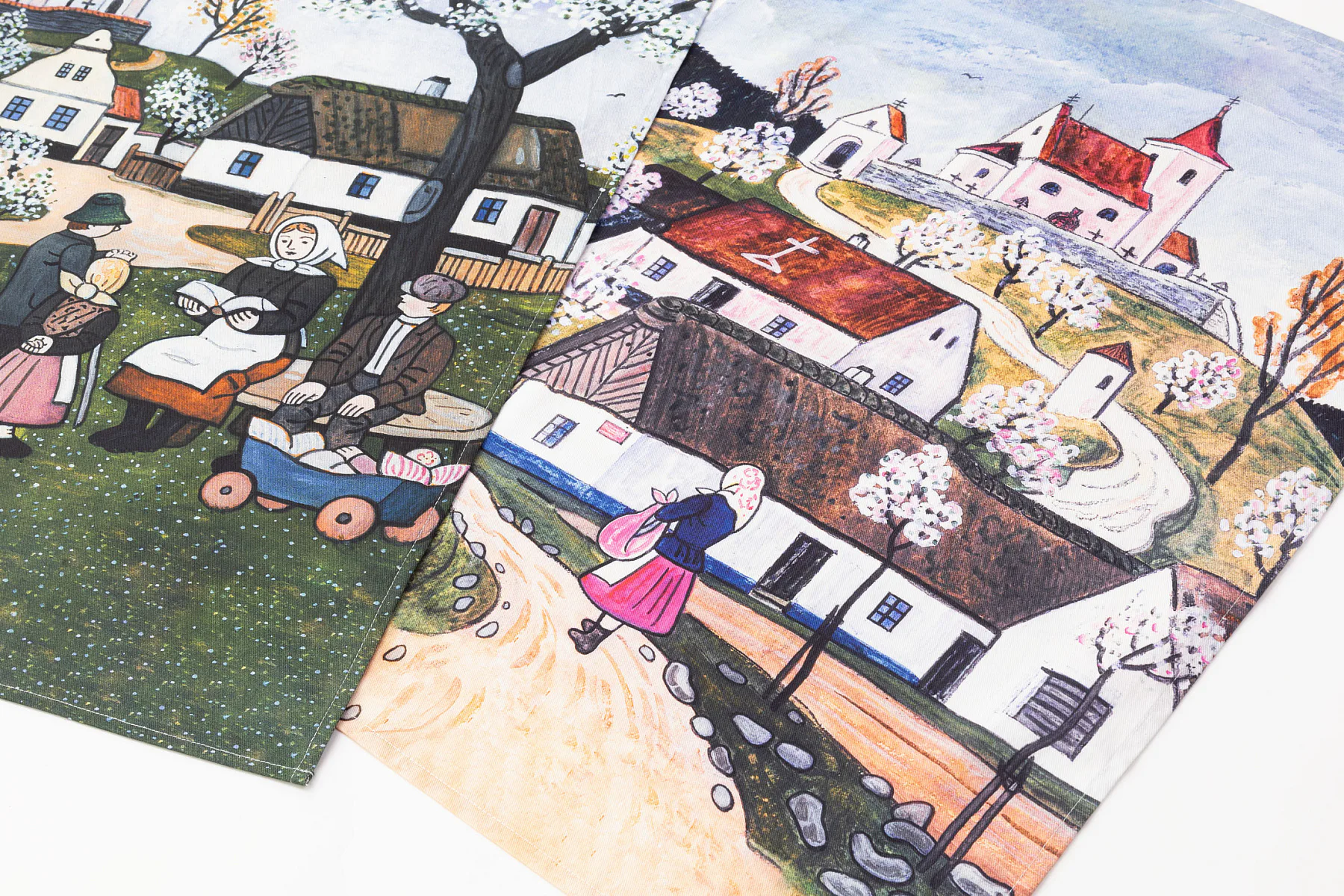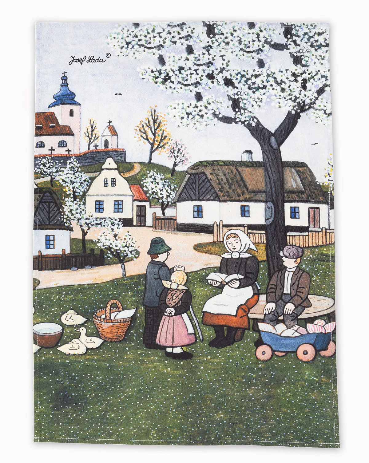 Kuchyňské utěrky Jaro na vsi se díky nejmodernější digitální tiskové technologii pyšní nádhernými barvami a precizními detaily, které vykreslují autentickou ladovskou poetiku.