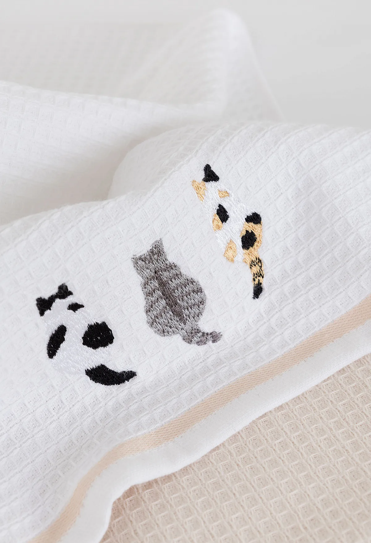 • 1x bílá utěrka s výšivkou a béžovou bordurou