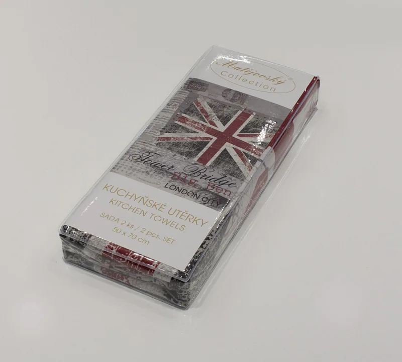 Exkluzivní kolekce designových kuchyňských utěrek přináší vzor - LONDON CITY. Nápaditá a svěží koláž londýnských motivů osvěží každý moderní interiér kuchyně.