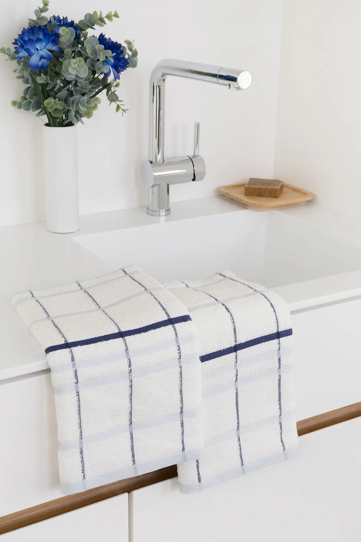 Kuchyňské utěrky Megan zdobí elegantní kostkovaný motiv v barevně sladěných tónéch, který je díky vetkané struktuře patrný z obou stran smyčkového froté. Utěrky jsou navrženy tak, aby měly ideální absorpční vlastnosti a současně rychle schly. Utěrky jsou ze všech čtyř stran lemované a jsou opatřeny praktickým poutkem.
