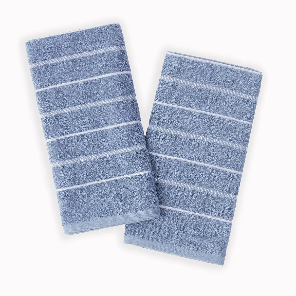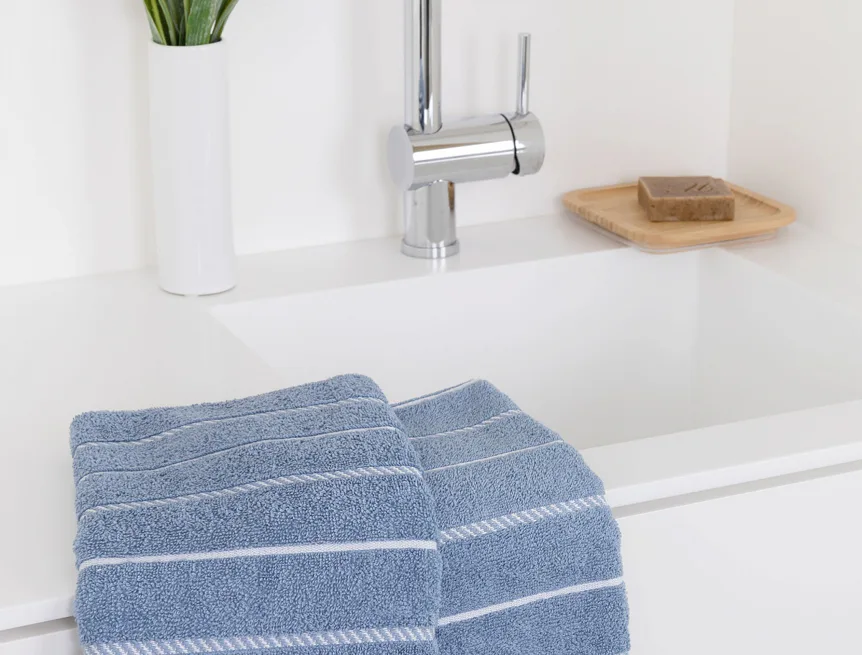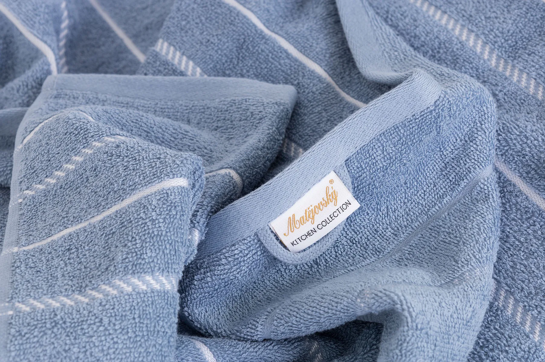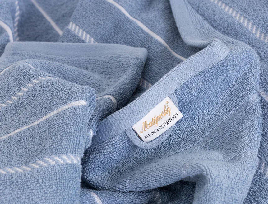 Kuchyňské utěrky Mona zdobí na vrchní straně smyčkového froté elegantní bílé proužky, na spodní straně utěrky jsou tyto proužky v barvě froté. Utěrky jsou navrženy tak, aby měly ideální absorpční vlastnosti a současně rychle schly. Utěrky jsou ze všech čtyř stran lemované a jsou opatřeny praktickým poutkem.