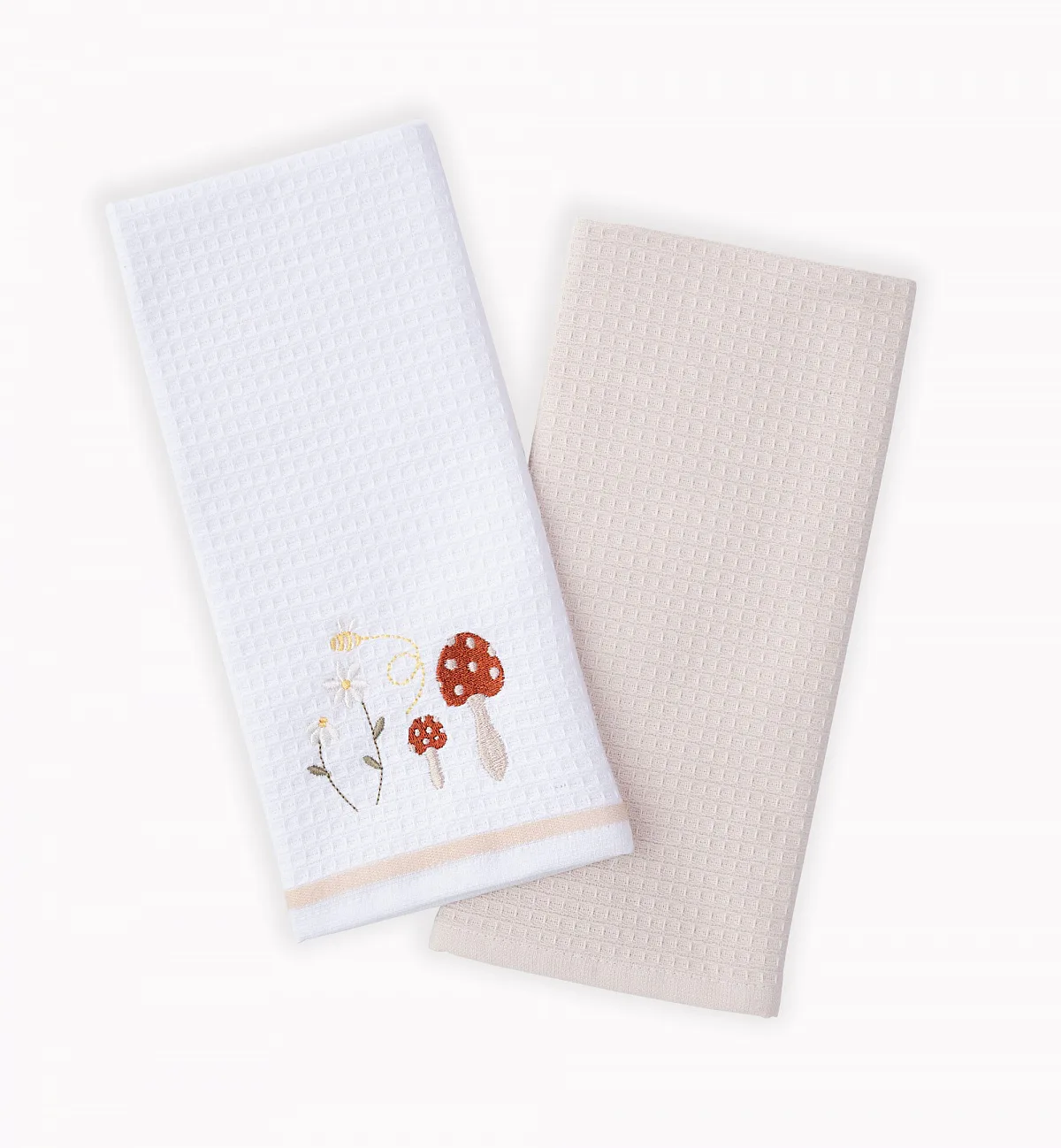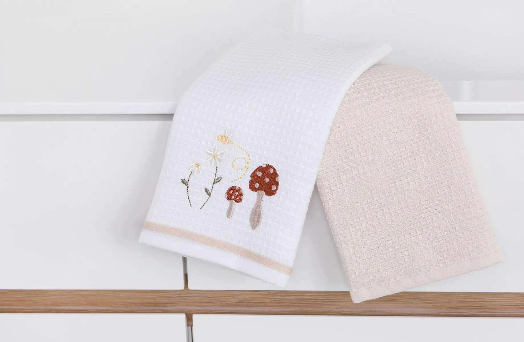 Atraktivní a precizně provedené lesklé výšivky se skvěle doplňují s okouzlujícími barevnými odstíny napříč celou kolekcí vaflových utěrek.