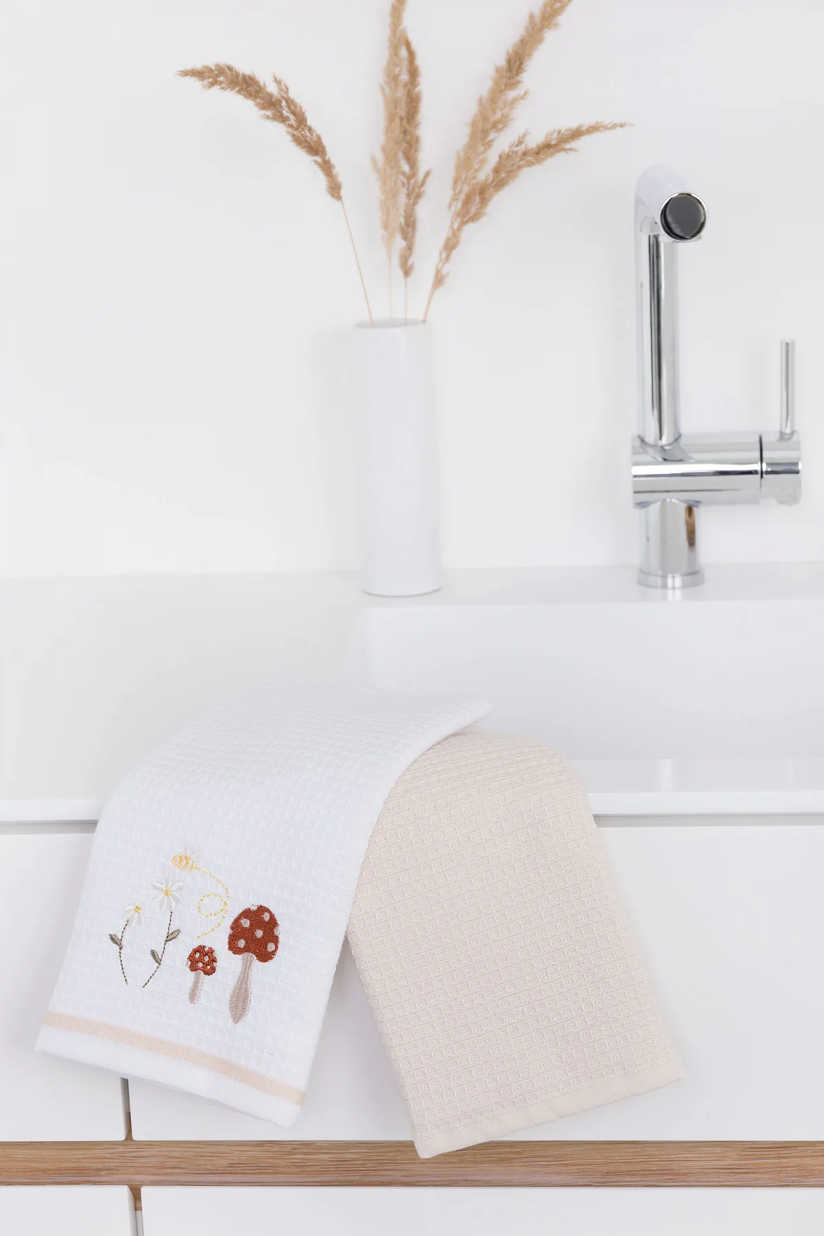 • 1x bílá utěrka s výšivkou a béžovou bordurou