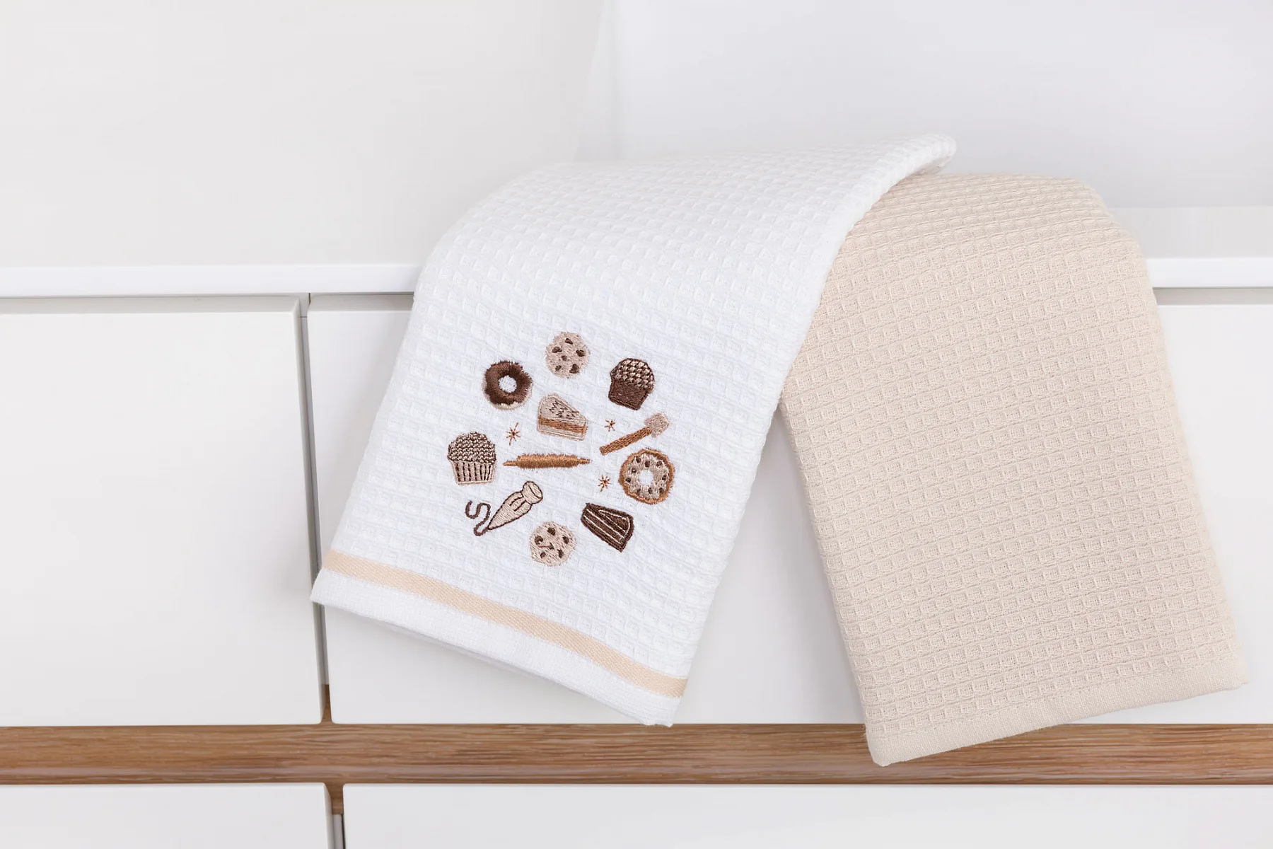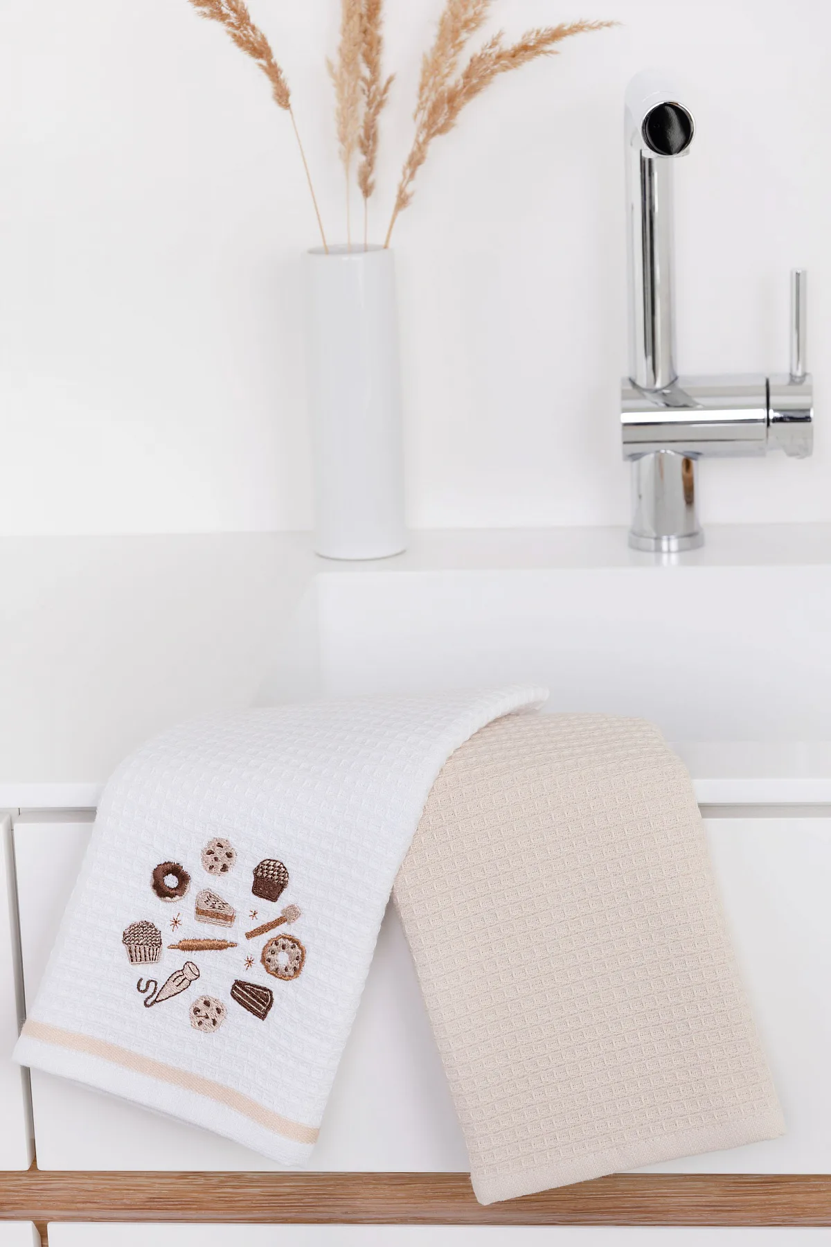 • 1x bílá utěrka s výšivkou a béžovou bordurou
