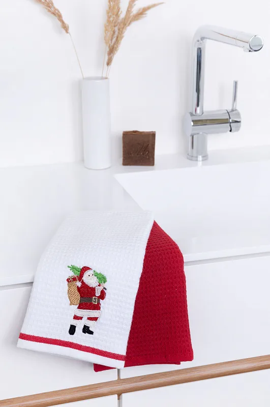 • 1x bílá utěrka s výšivkou a červenou bordurou