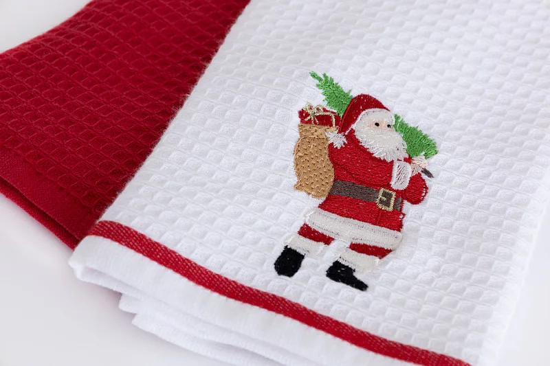 Atraktivní a precizně provedené lesklé výšivky se skvěle doplňují s okouzlujícími barevnými odstíny napříč celou kolekcí vaflových utěrek.