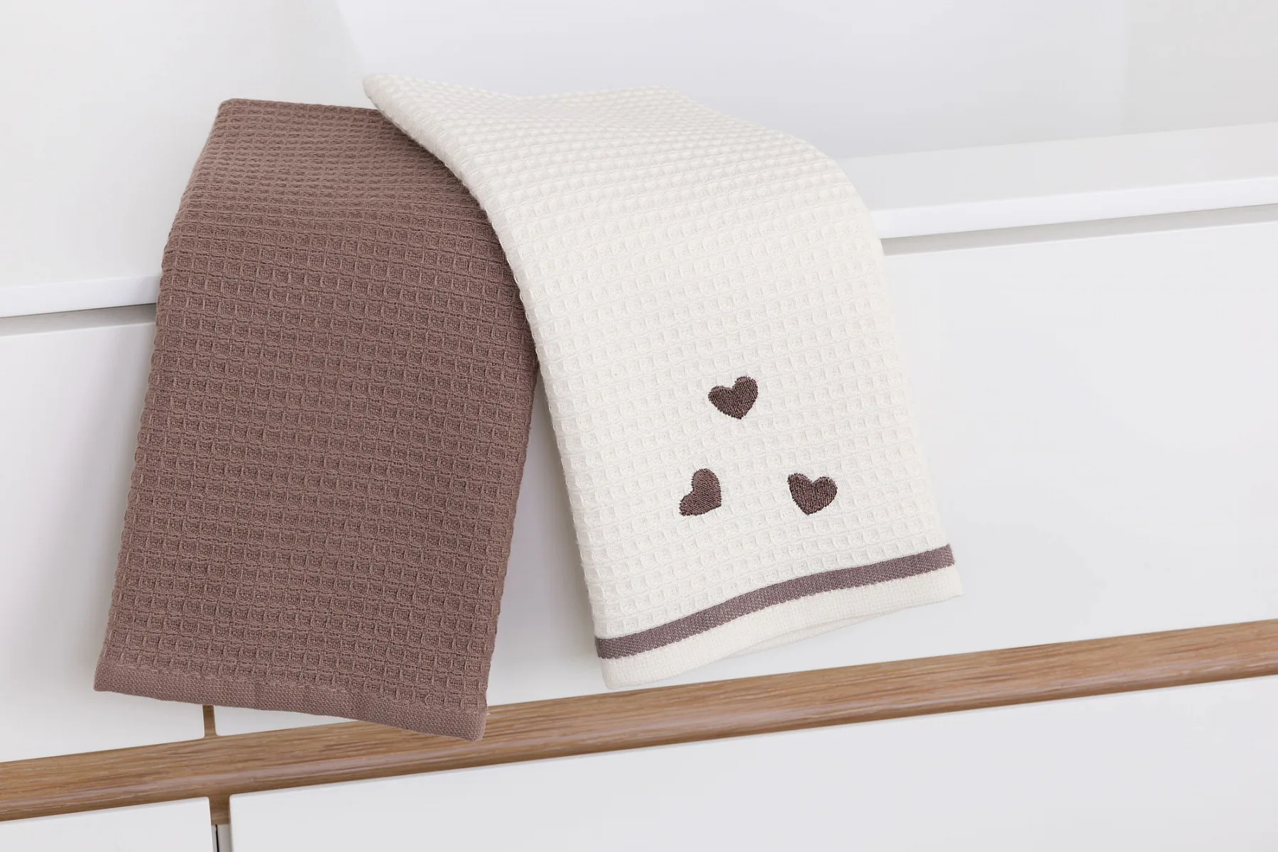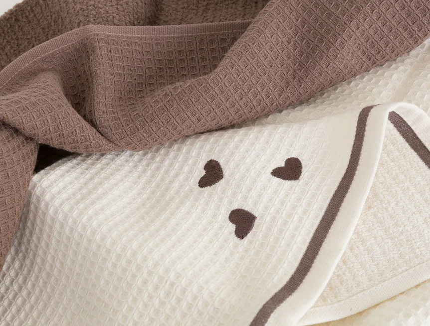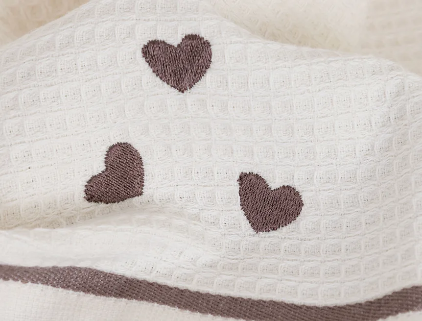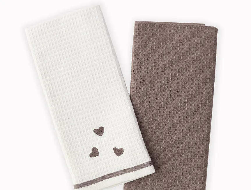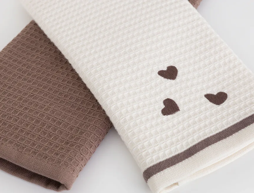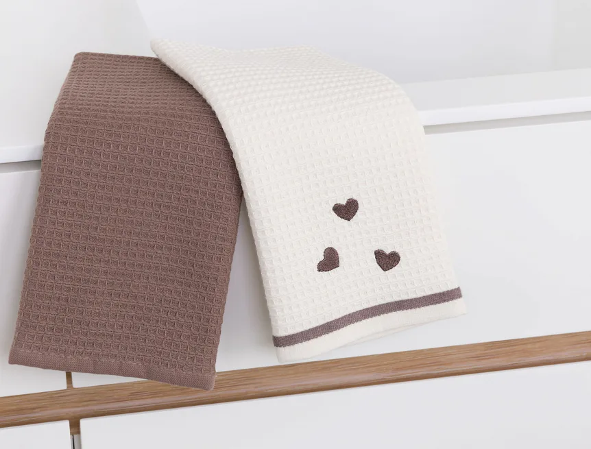 Atraktivní a precizně provedené lesklé výšivky se skvěle doplňují s okouzlujícími barevnými odstíny napříč celou kolekcí vaflových utěrek.