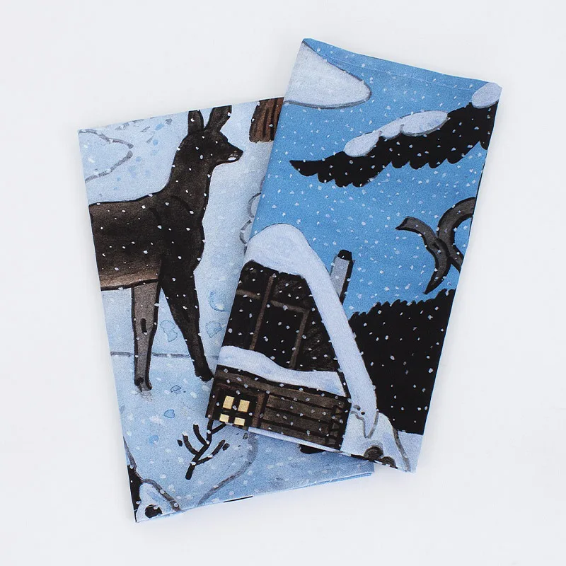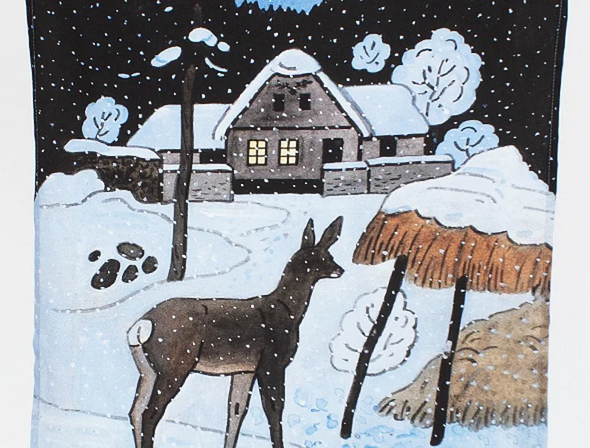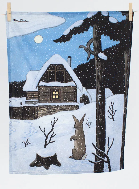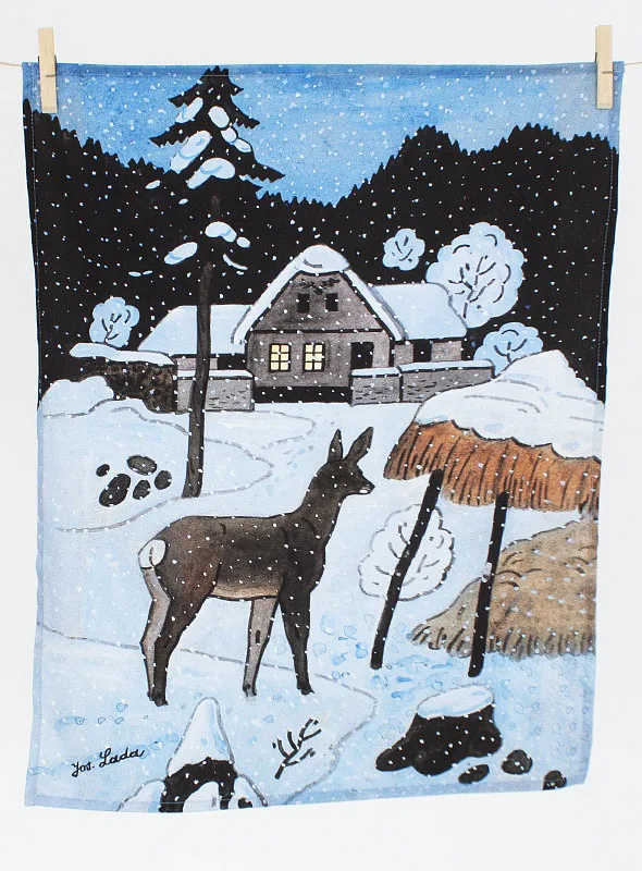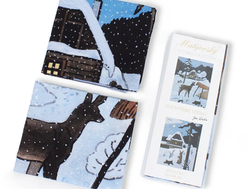 Kuchyňské utěrky Srnka & Zajíc se díky nejmodernější digitální tiskové technologii pyšní nádhernými barvami a precizními detaily, které vykreslují autentickou ladovskou poetiku.