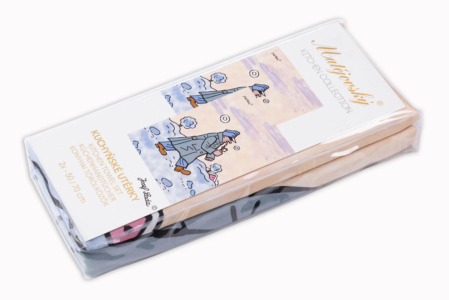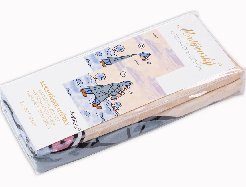 Kolekce bavlněných kuchyňských utěrek s kresbami Josefa Lady vnese do vaší kuchyně jedinečnou atmosféru.