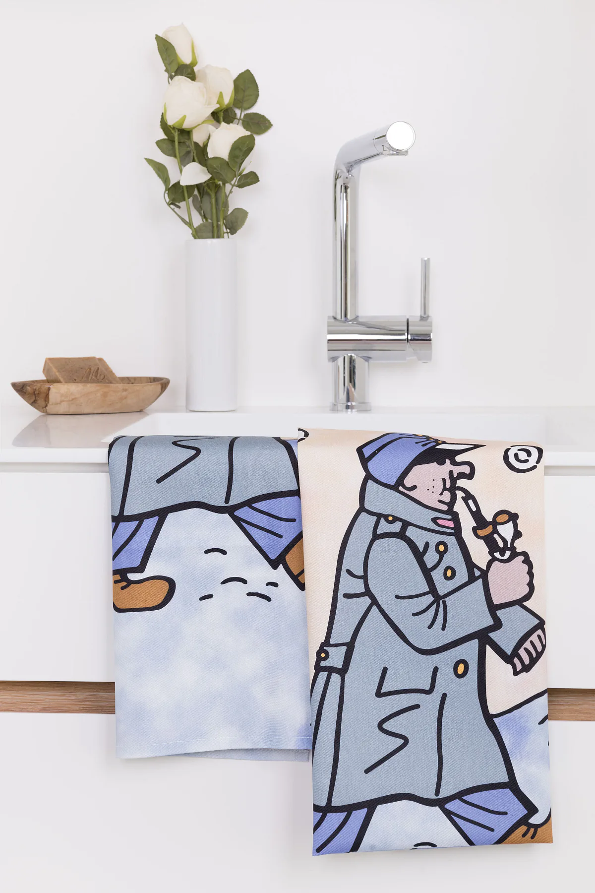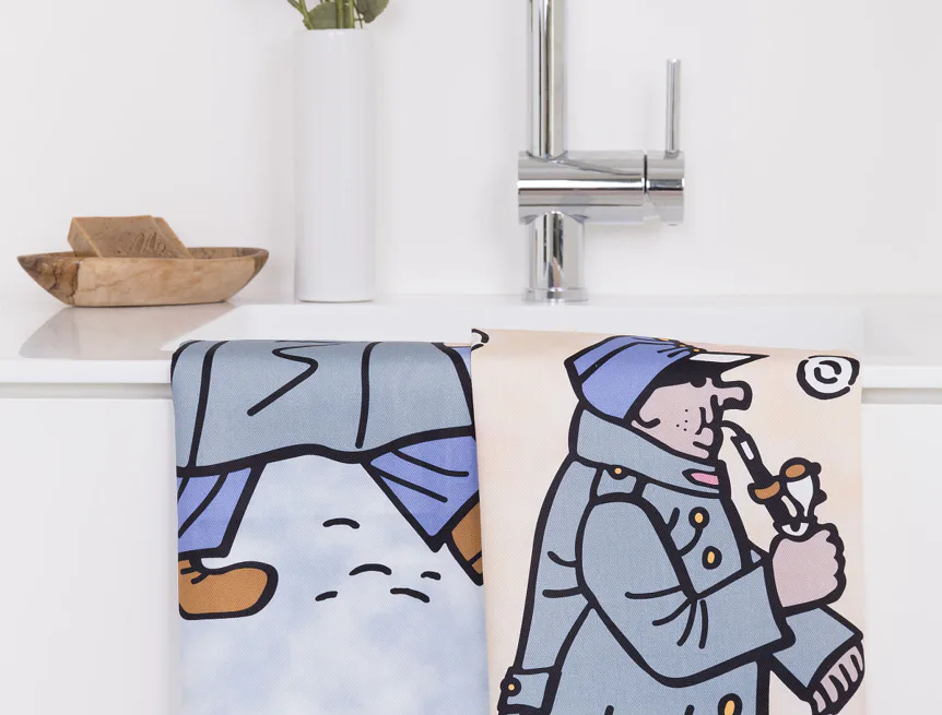 Kuchyňské utěrky Švejk s fajfkou se díky nejmodernější digitální tiskové technologii pyšní nádhernými barvami a precizními detaily, které vykreslují autentickou ladovskou poetiku.